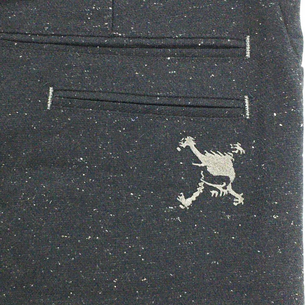 【美品】オークリー パンツ ダークグレー×白 総柄 ティー装着可 ロゴ刺しゅう メンズ 34 ゴルフウェア Oakley