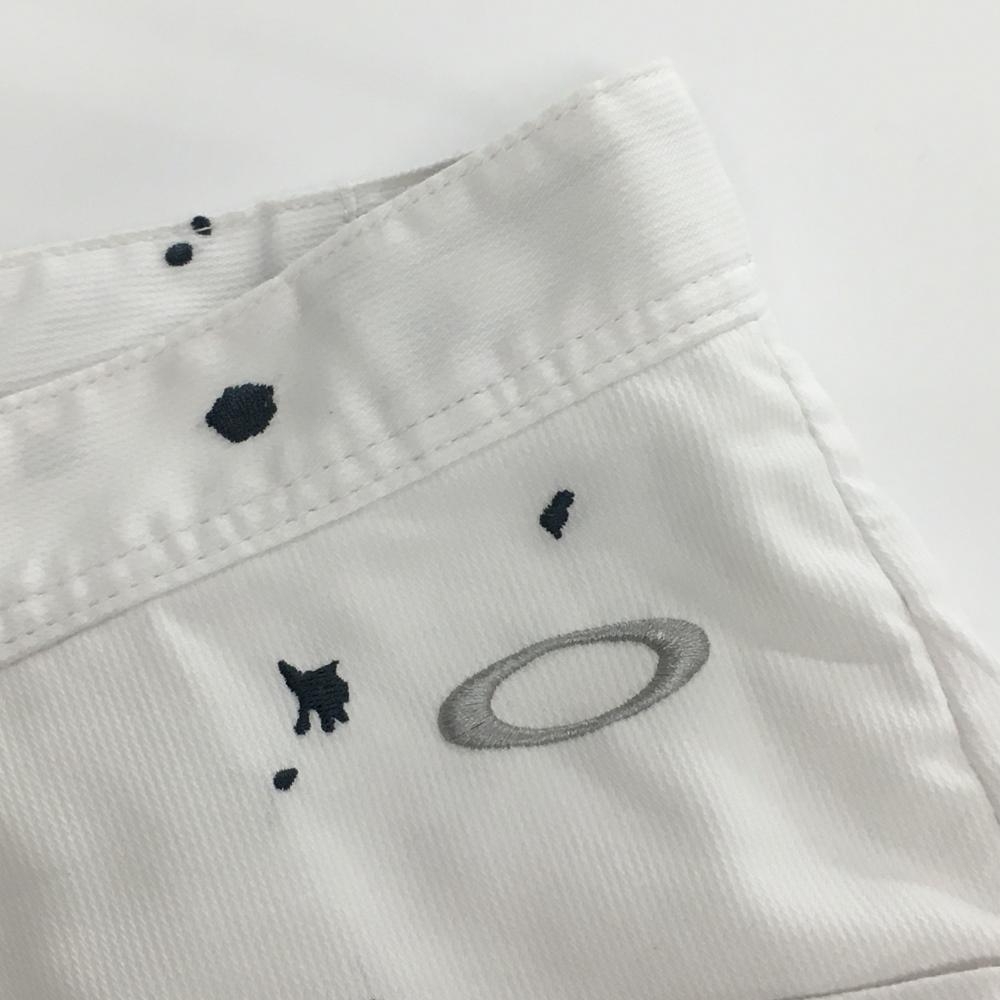 オークリー パンツ 白×ネイビー 総柄 ロゴグレー メンズ 34 ゴルフウェア Oakley