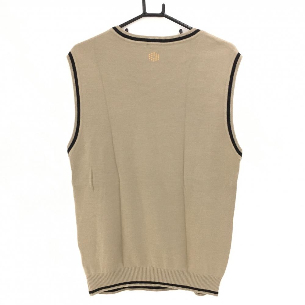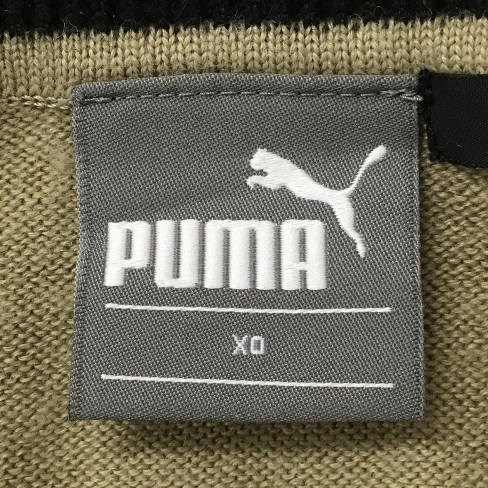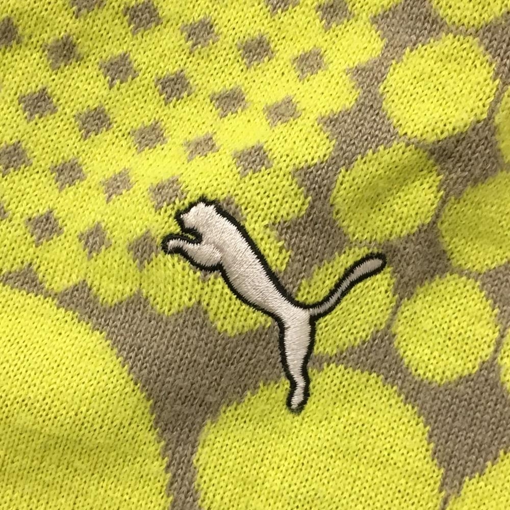 【美品】プーマ ニットベスト グレージュ×イエロー ドット調 Vネック ロゴ刺しゅう メンズ XO ゴルフウェア PUMA