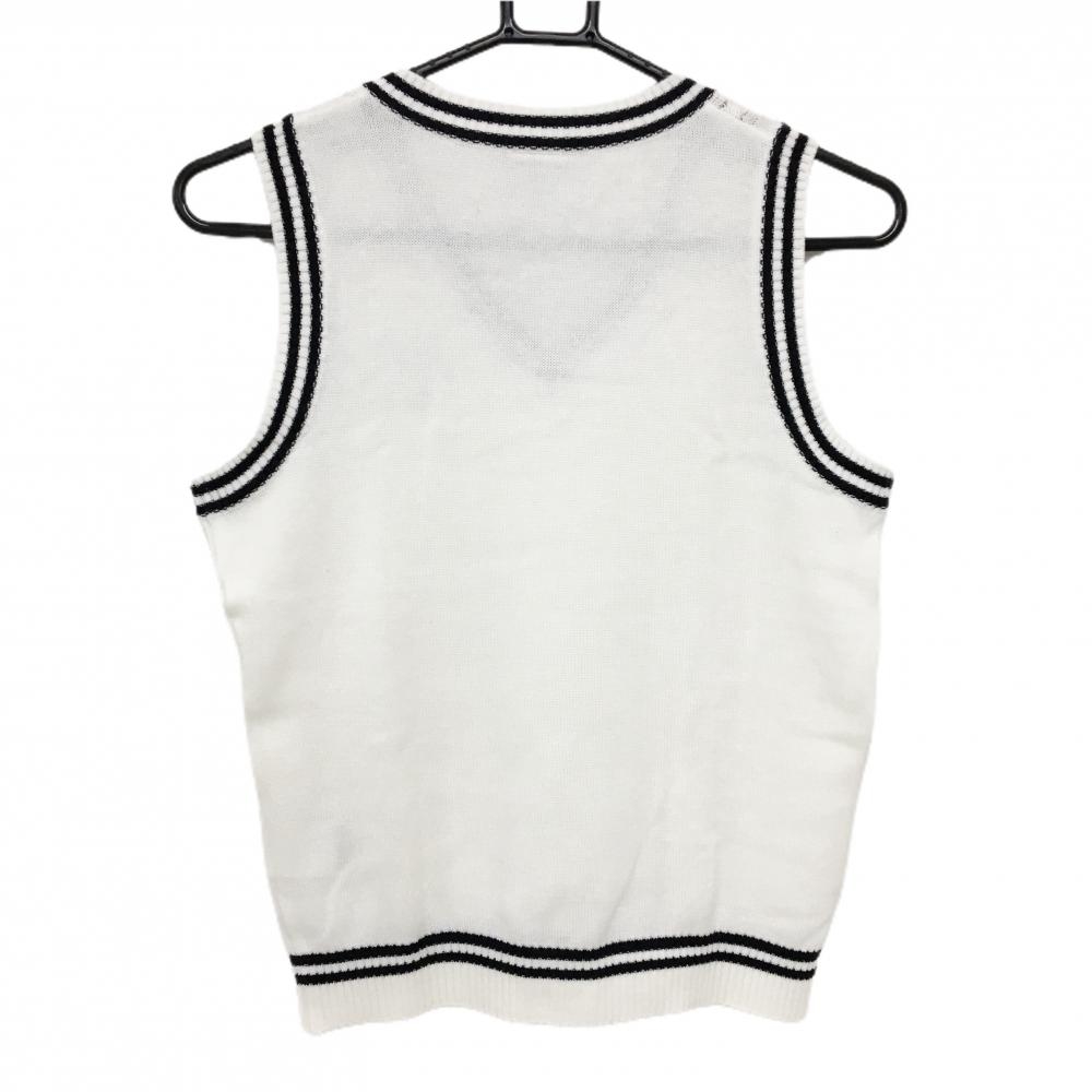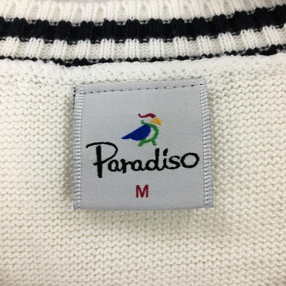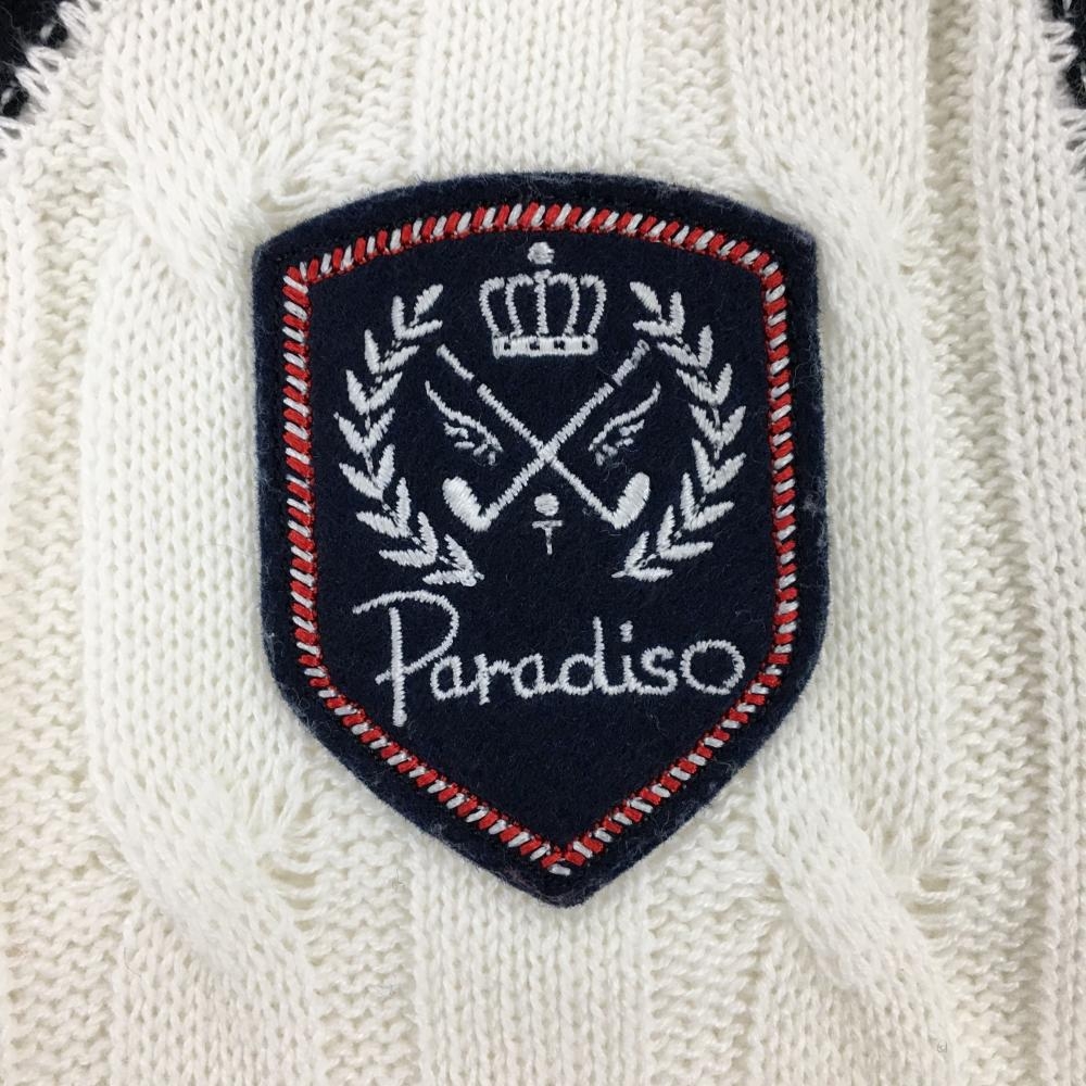 【超美品】パラディーゾ ニットベスト 白×黒 ケーブル編み レディース M ゴルフウェア Paradiso
