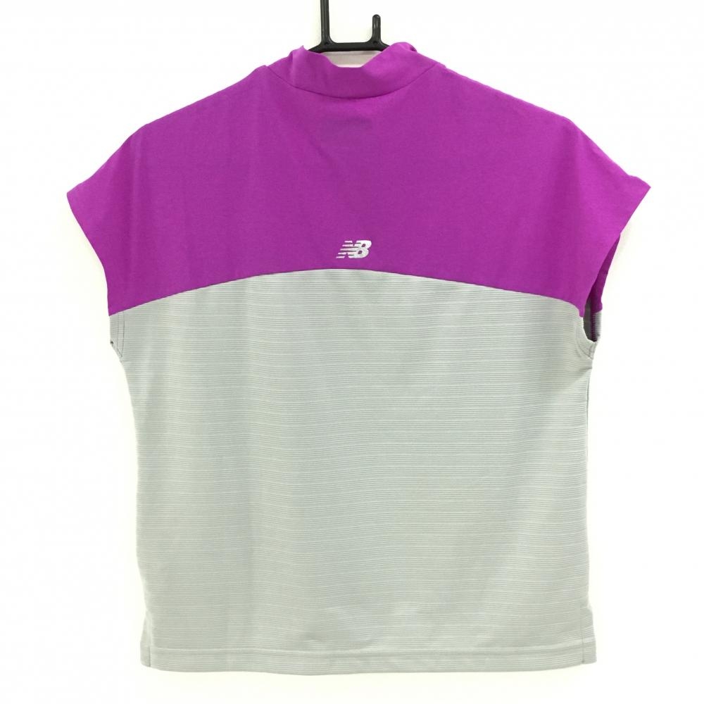 【超美品】ニューバランスゴルフ 半袖ハイネックシャツ パープル×グレー レディース 1(M) ゴルフウェア 2023年モデル New Balance