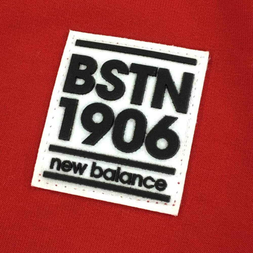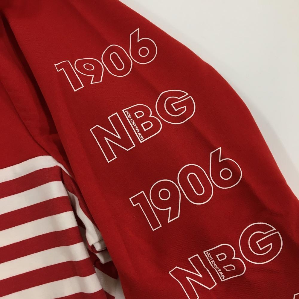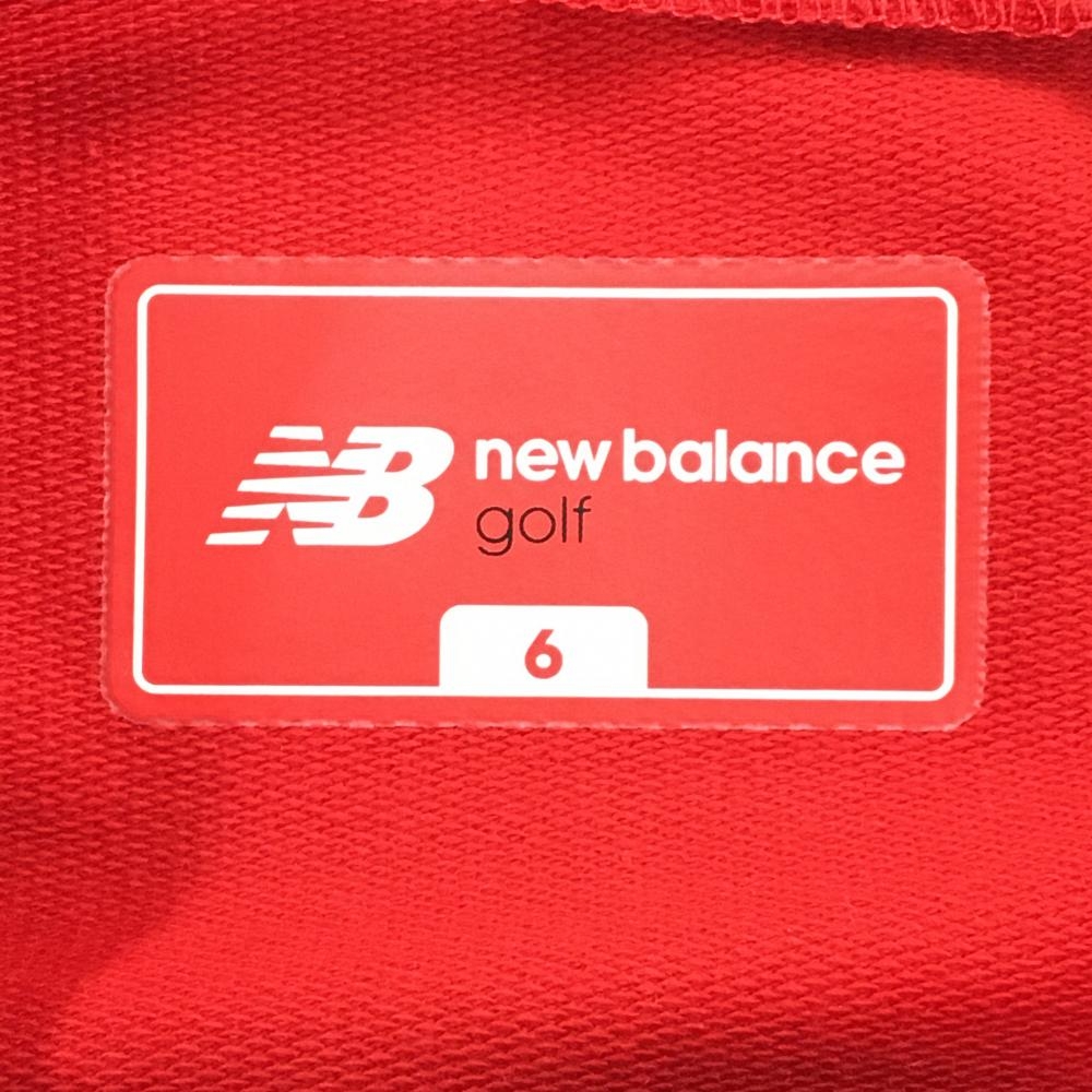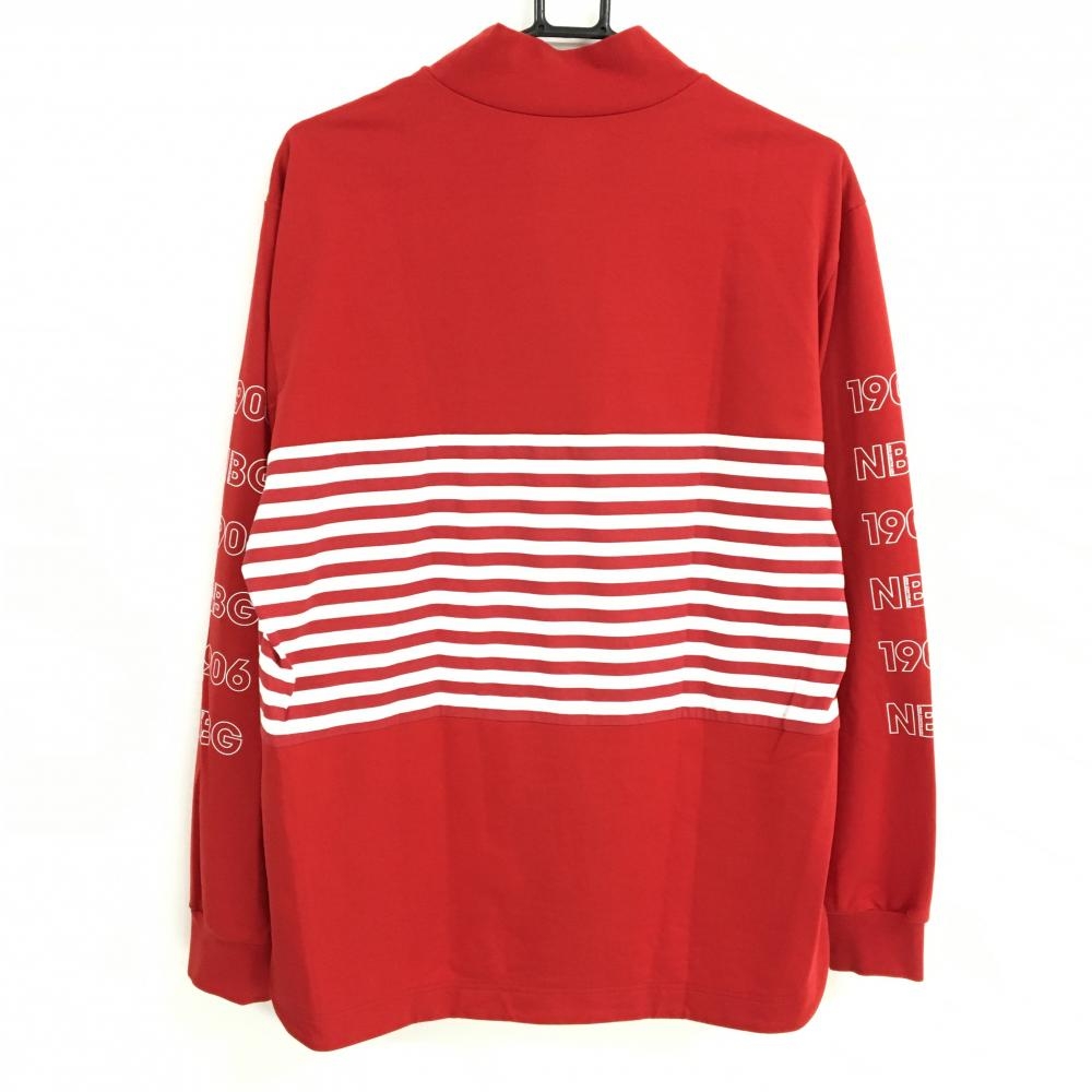 【超美品】ニューバランスゴルフ 長袖ハイネックシャツ レッド×白 一部ボーダー 袖ロゴプリント メンズ 6(XL) ゴルフウェア New Balance