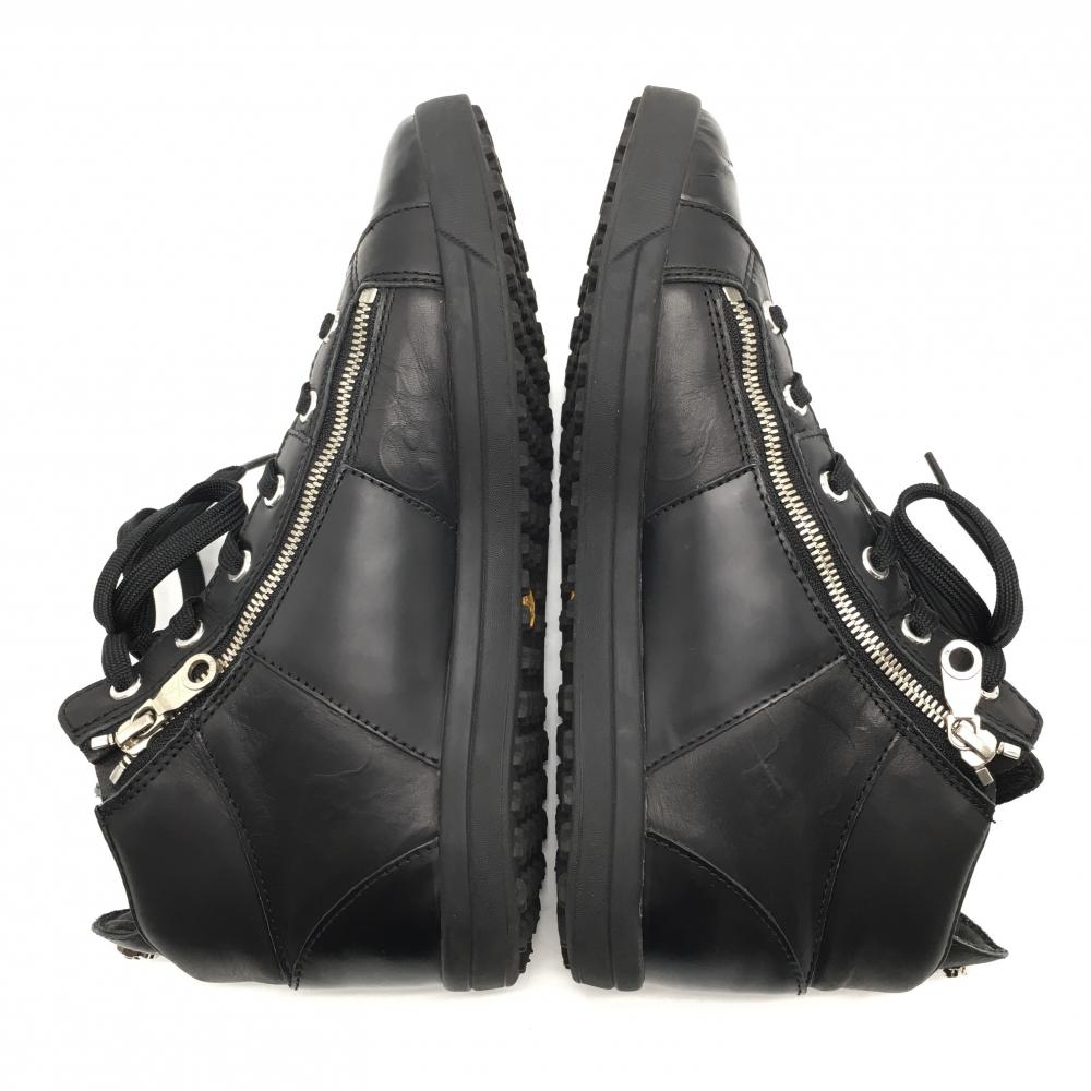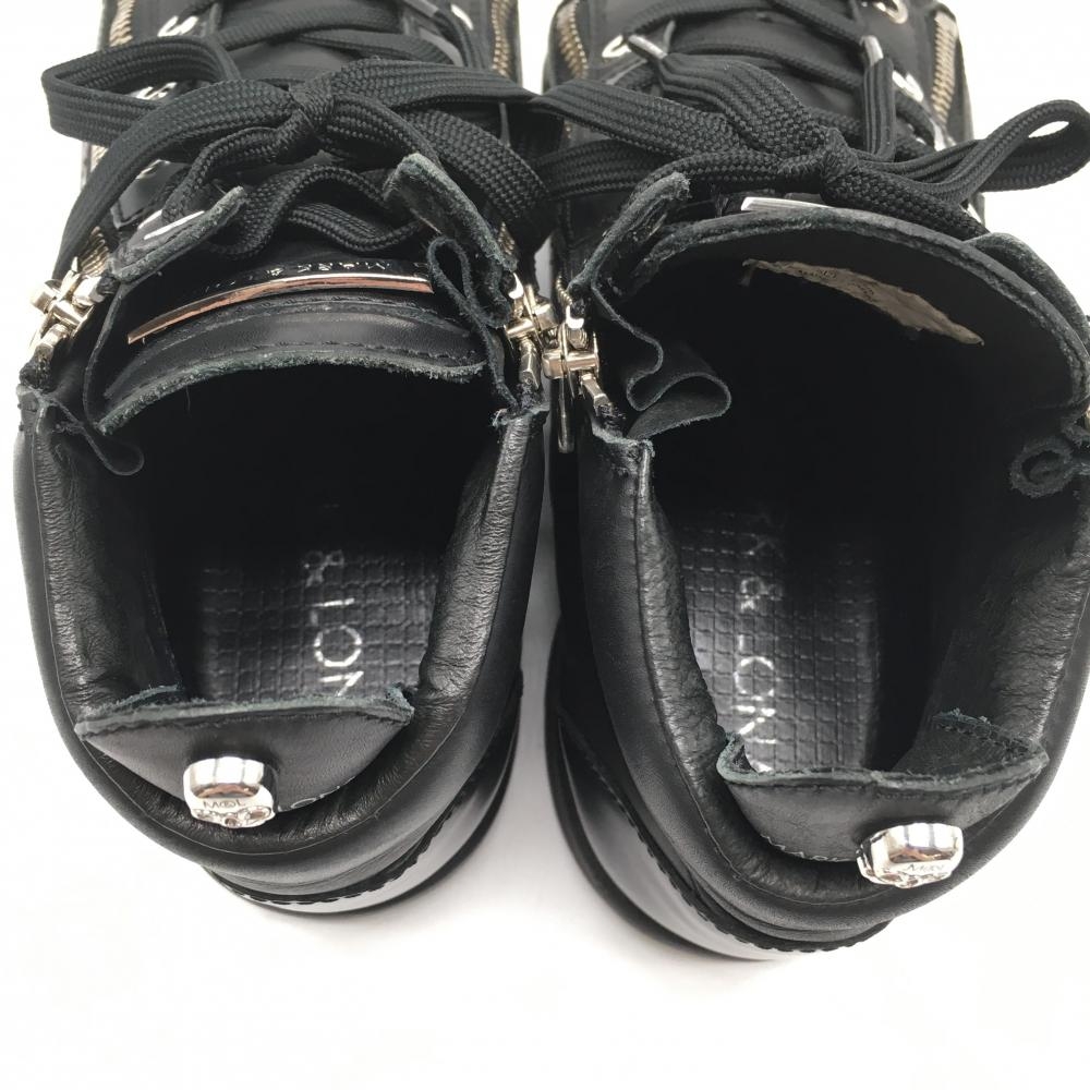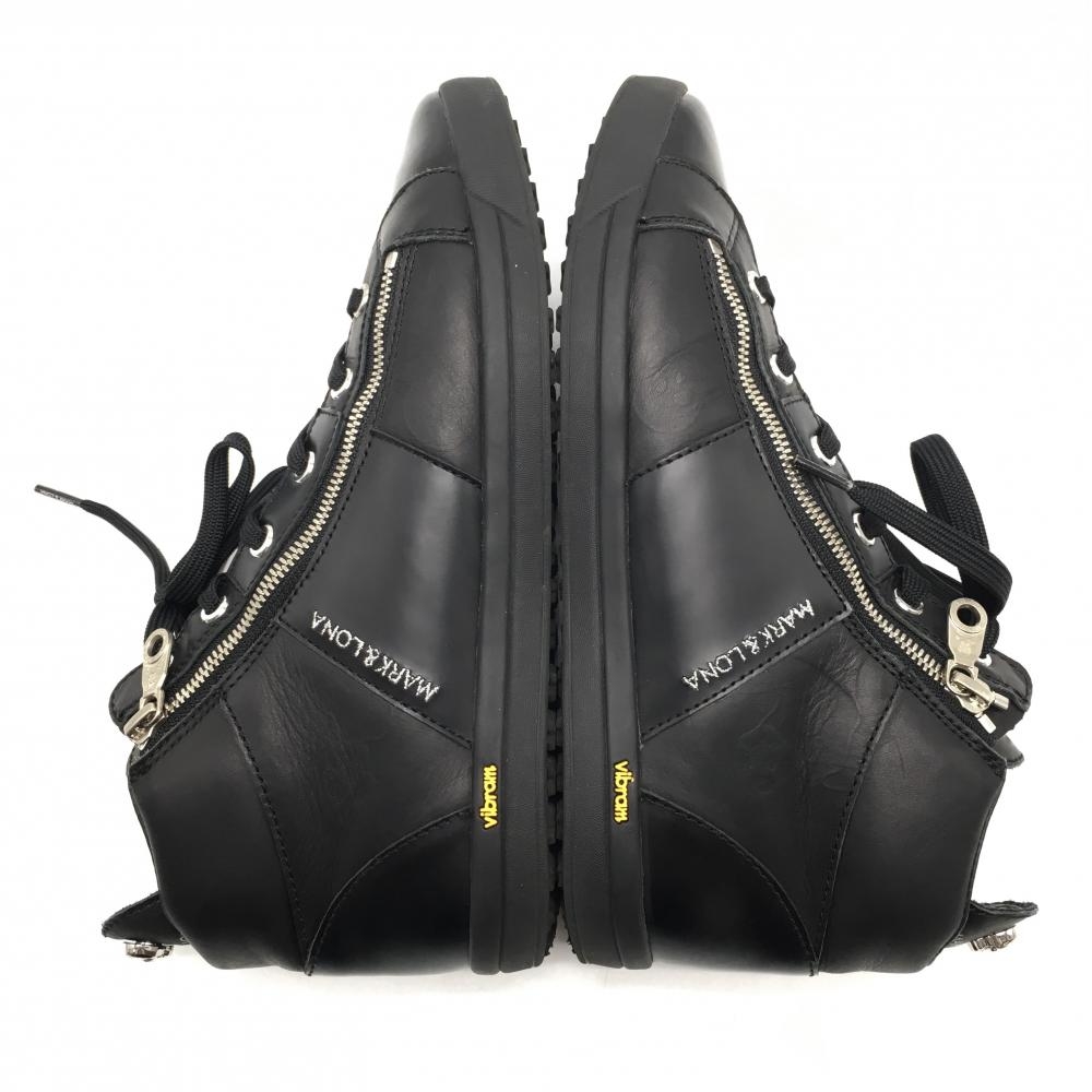 【美品】マークアンドロナ ゴルフシューズ 黒 ML-ZK28 ハイカット スパイクレス サイドダブルジップ メンズ 25.0 ゴルフウェア MARK&LONA