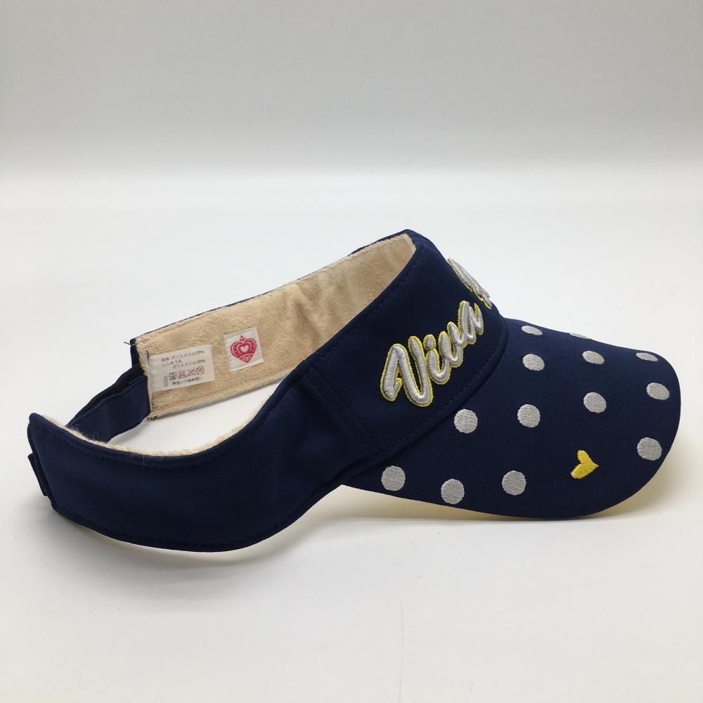 【美品】ビバハート サンバイザー ネイビー×白 つばドット 内側パイル地 レディース 40 ゴルフウェア VIVA HEART