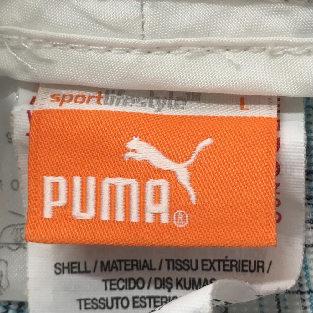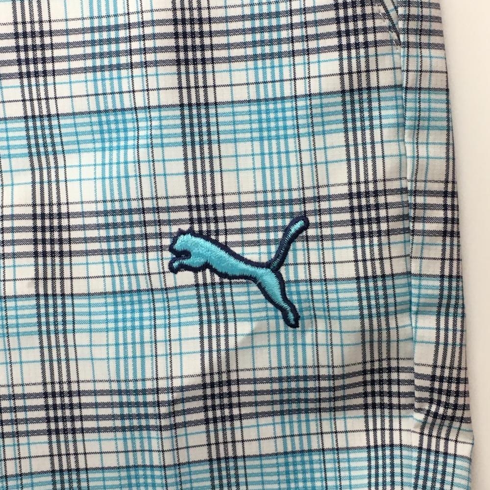 【超美品】プーマ ハーフパンツ 白×ライトブルー チェック ストレッチ メンズ L ゴルフウェア PUMA