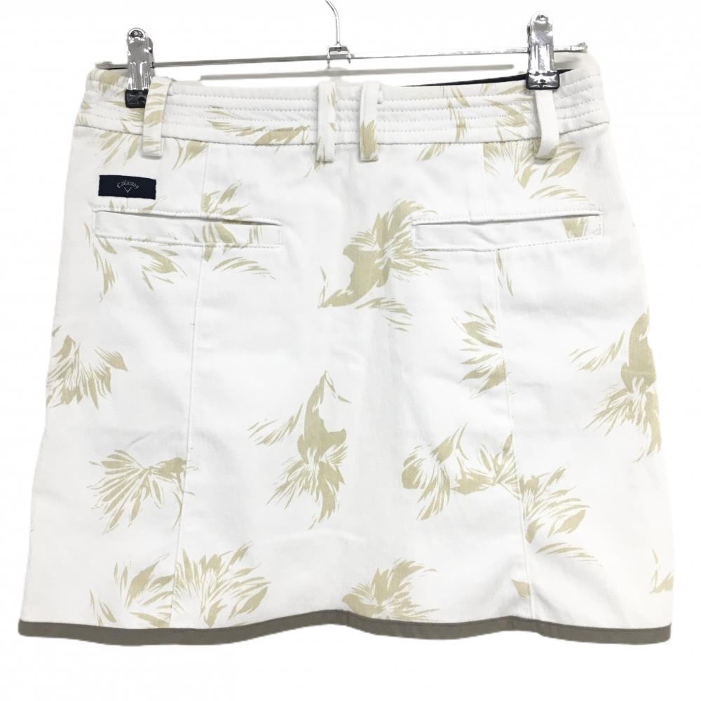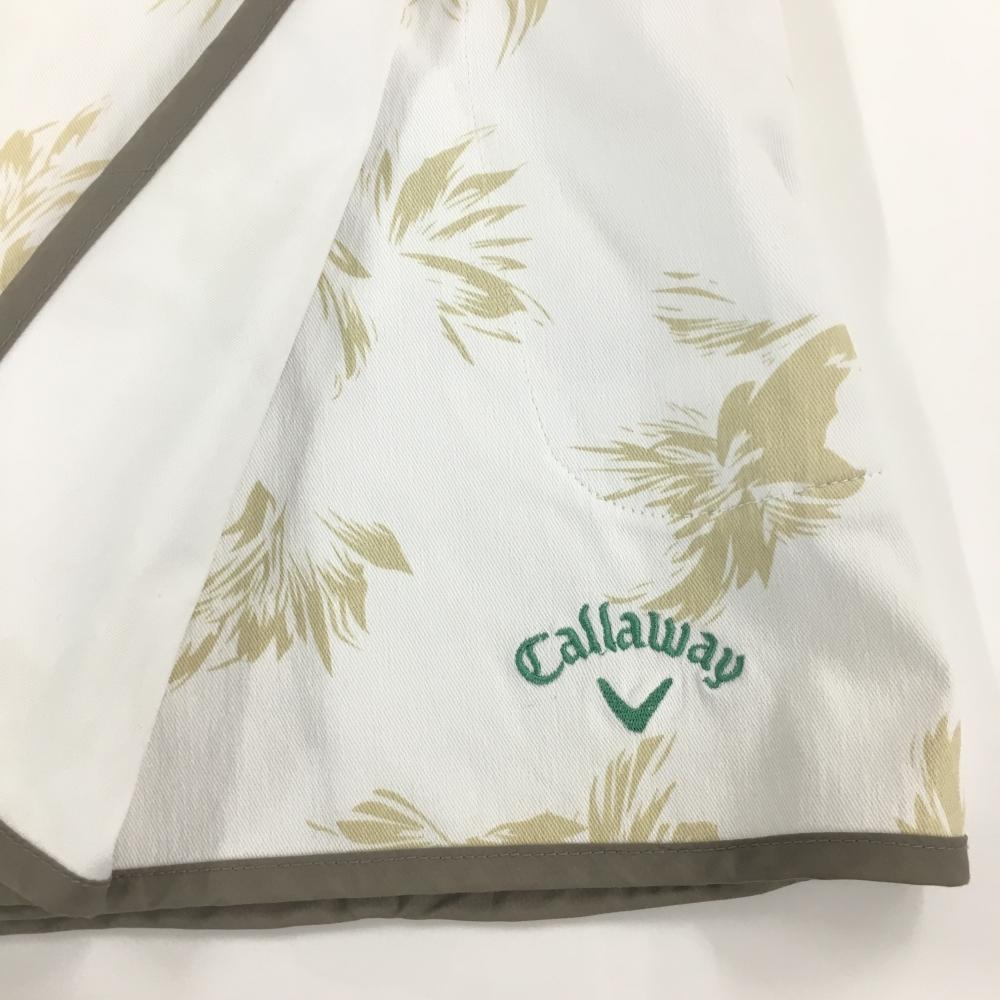 キャロウェイ スカート 白×ベージュ リーフ柄 裾ロゴ レディース M ゴルフウェア Callaway