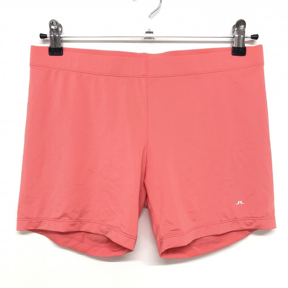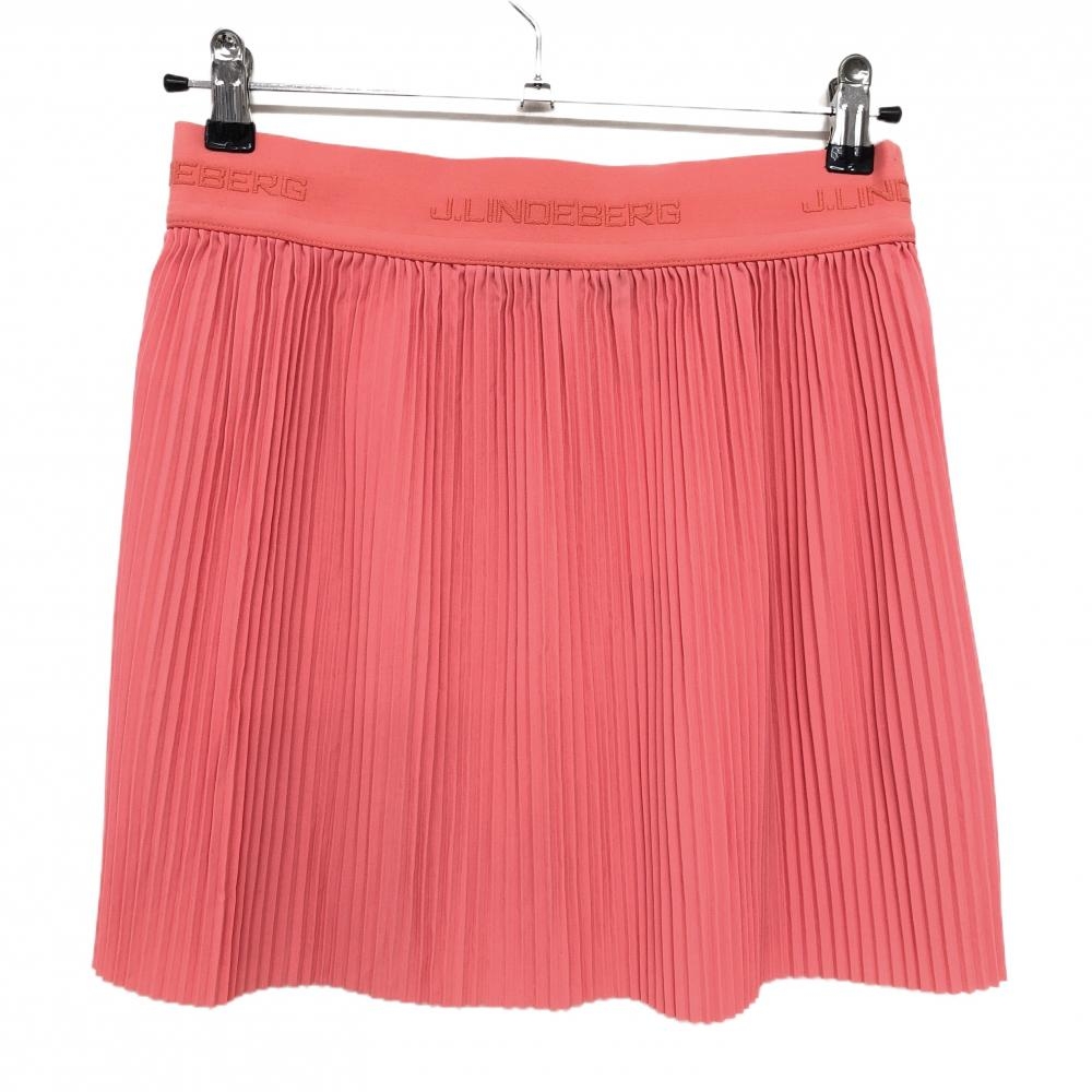 【超美品】ジェイリンドバーグ プリーツスカート サーモンピンク ウエストゴムロゴ レディース M ゴルフウェア J.LINDEBERG
