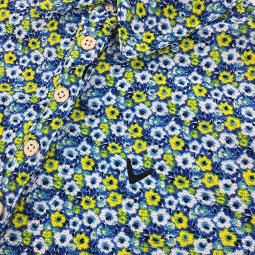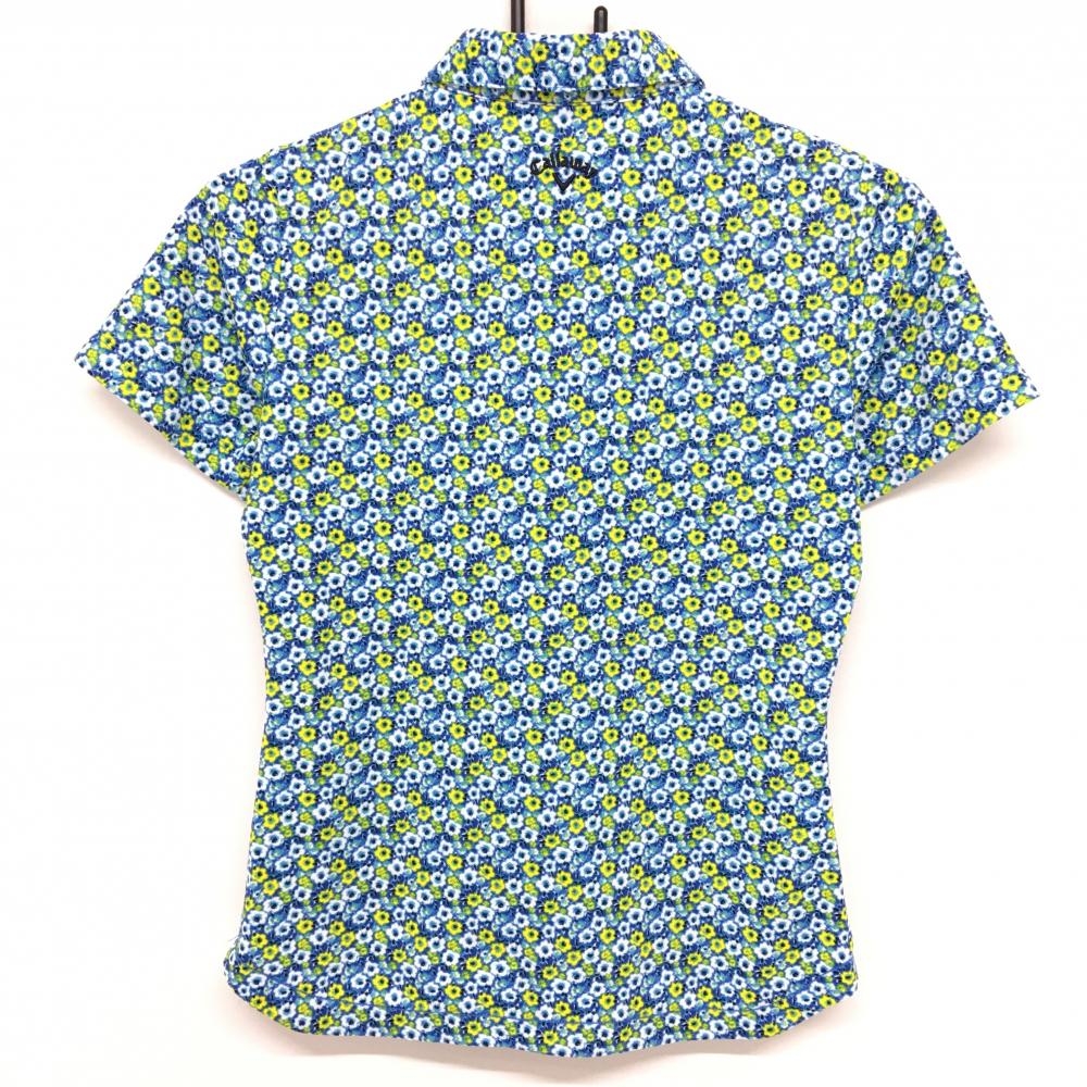 【超美品】キャロウェイ 半袖ポロシャツ ネイビー×イエロー 花柄 レディース M ゴルフウェア Callaway