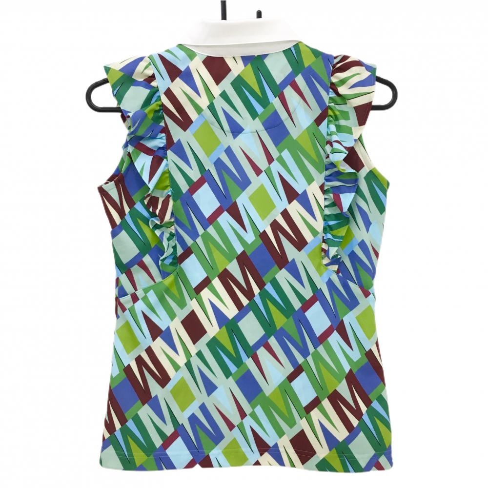 【超美品】マークアンドロナ ノースリーブポロシャツ グリーン×ボルドー 総柄 レディース 38(M) ゴルフウェア 2023年モデル MARK&LONA