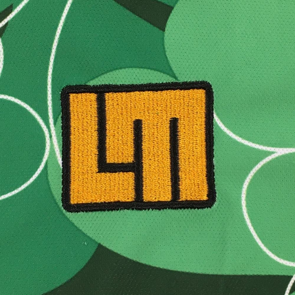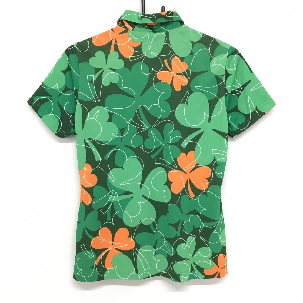 【超美品】ラウドマウス 半袖ポロシャツ グリーン×オレンジ ラッキーオレンジ柄 ロゴ刺しゅう レディース L ゴルフウェア LOUDMOUTH