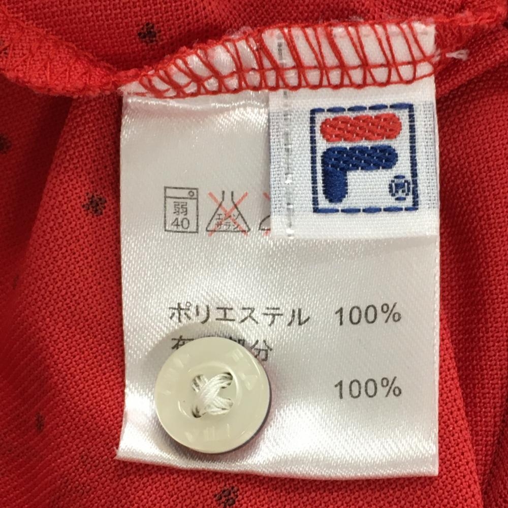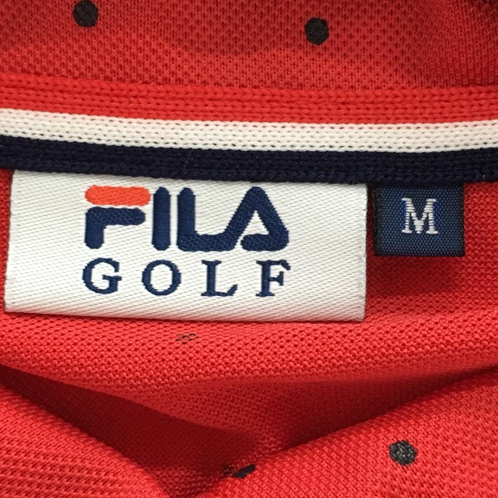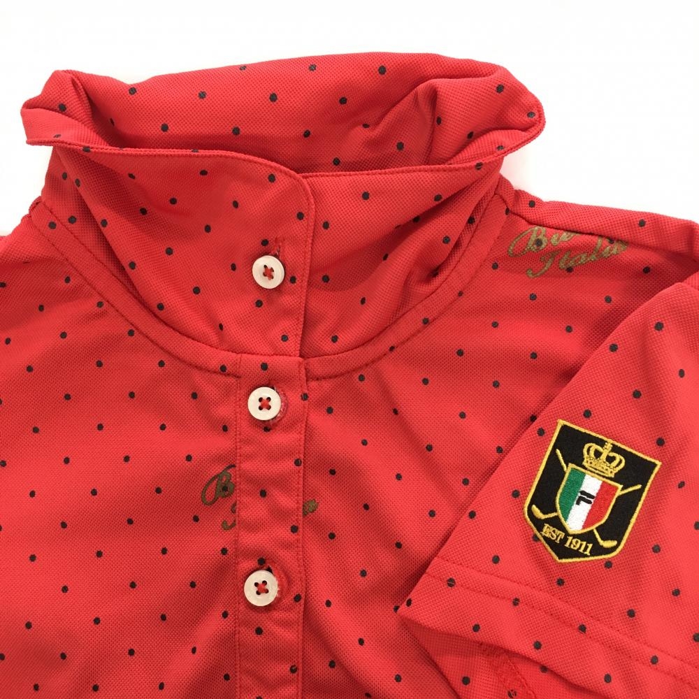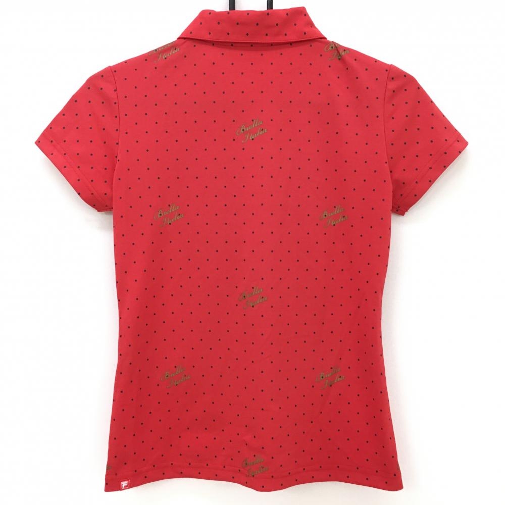 【超美品】フィラゴルフ 半袖ポロシャツ レッド×黒 ドット ハイネック レディース M ゴルフウェア FILA GOLF