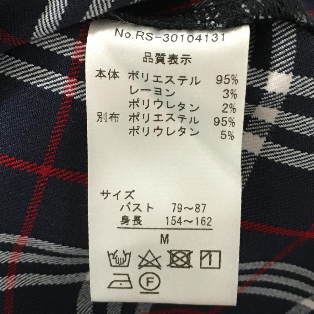 【超美品】リエンダスエルタ 長袖ポロシャツ ネイビー×白 チェック フリル レディース M ゴルフウェア rienda suelta
