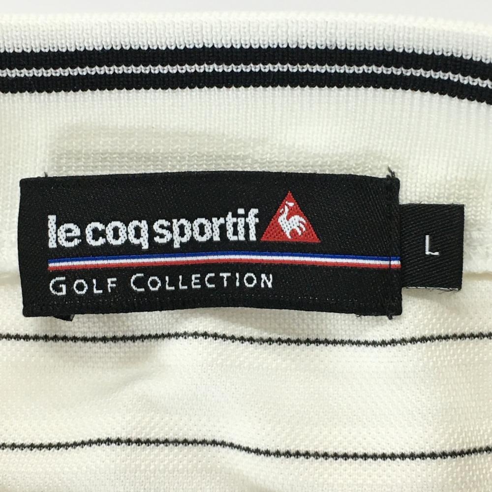 【超美品】ルコックゴルフ 半袖ハイネックシャツ 白×黒 ボーダー ストレッチ メンズ L ゴルフウェア le coq sportif