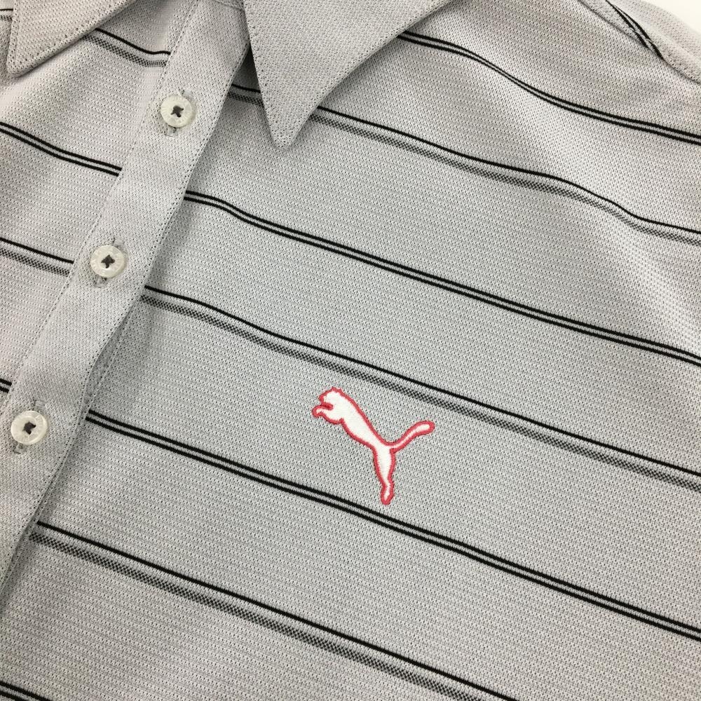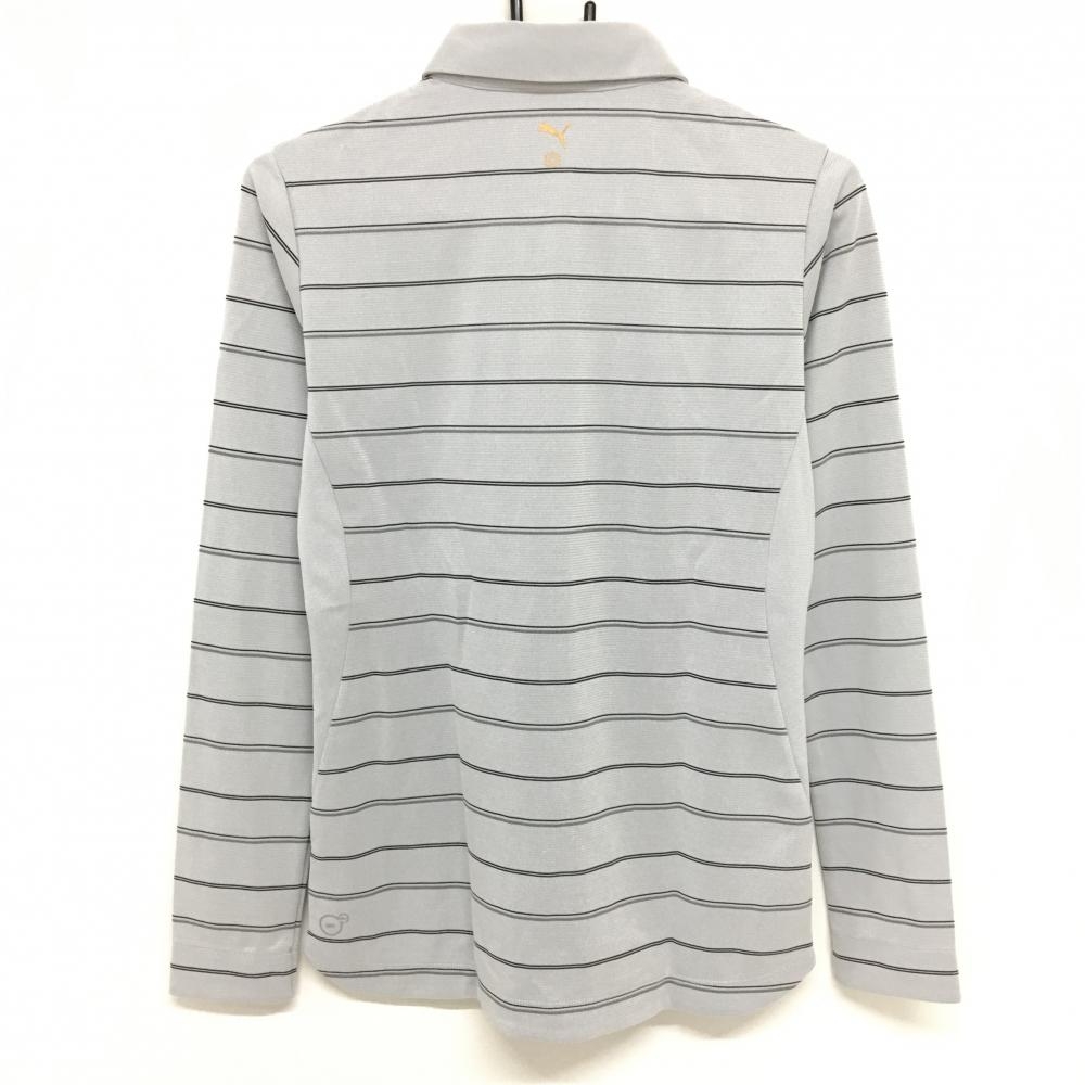 【超美品】プーマ 長袖ポロシャツ ライトグレー×黒 ボーダー ロゴ刺しゅう レディース O ゴルフウェア PUMA