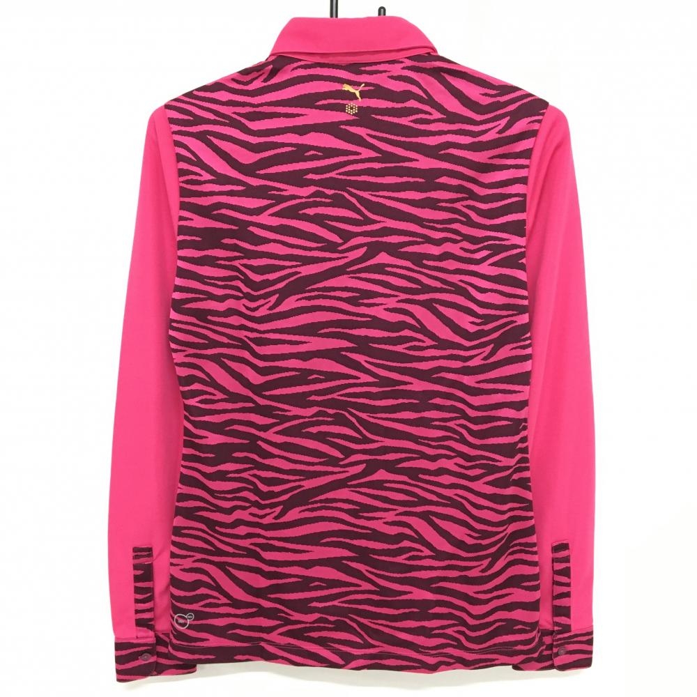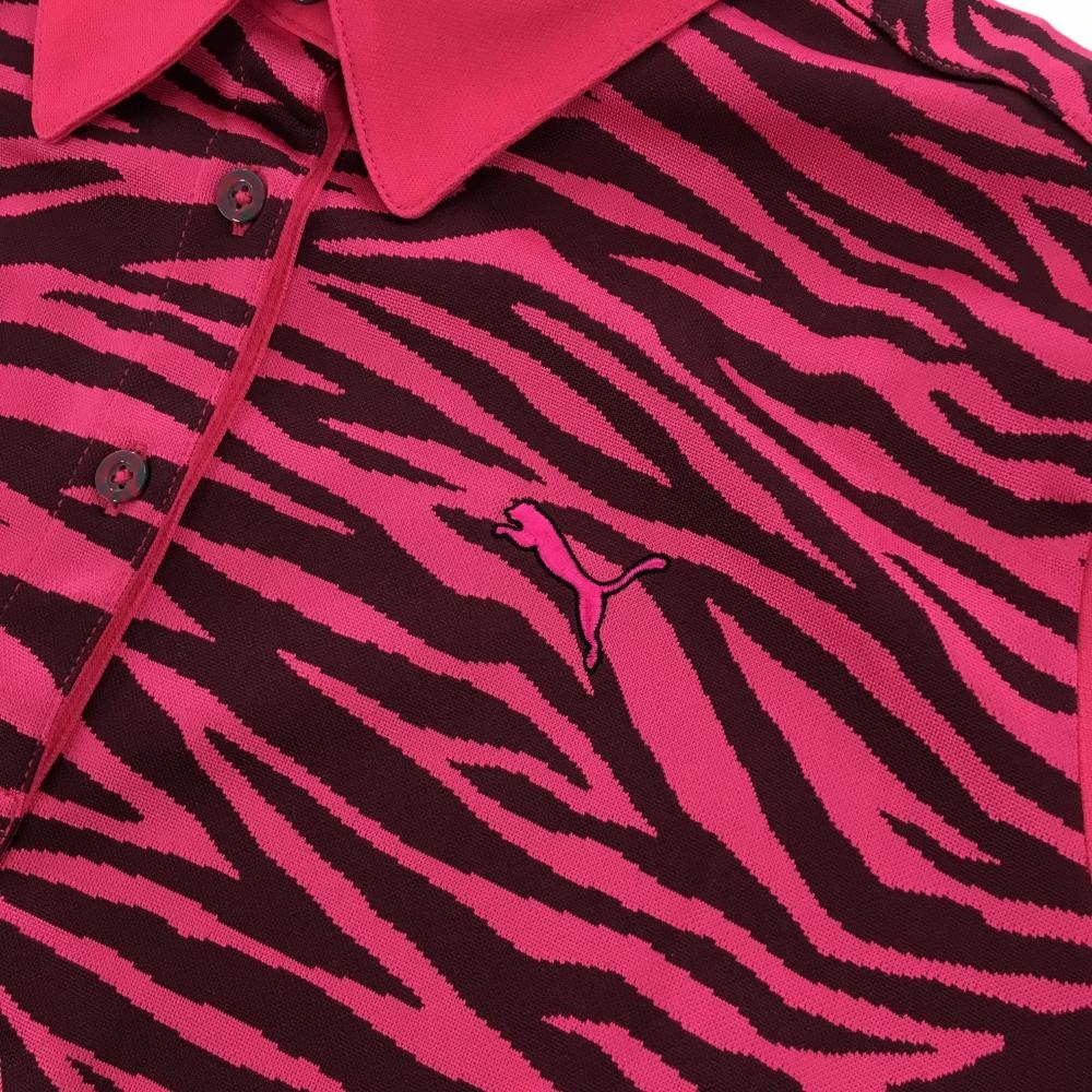 【超美品】プーマ 長袖ポロシャツ ピンク×黒 ゼブラ柄 ロゴ刺しゅう レディース O ゴルフウェア PUMA