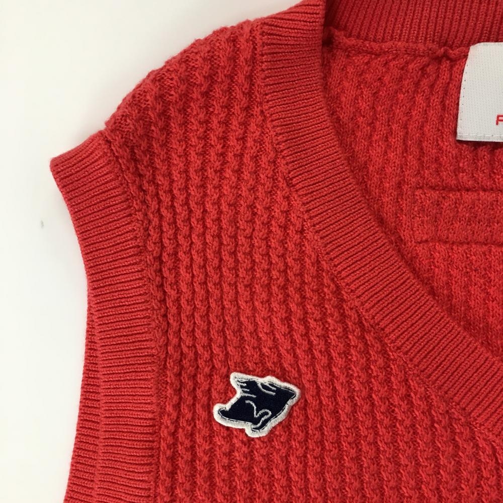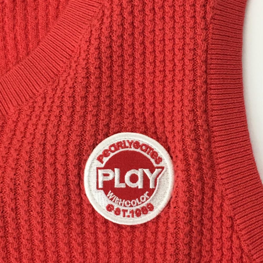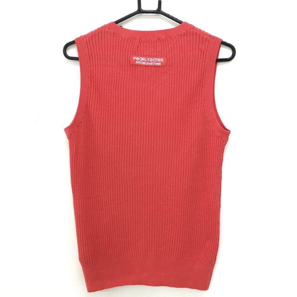 【超美品】パーリーゲイツ ニットベスト レッド コットン100% ワッペン メンズ 5(L) ゴルフウェア PEARLY GATES