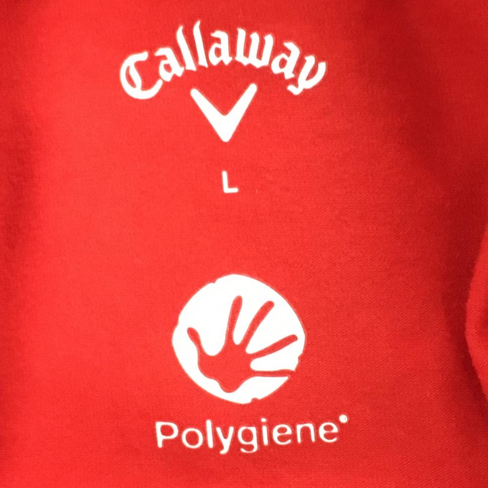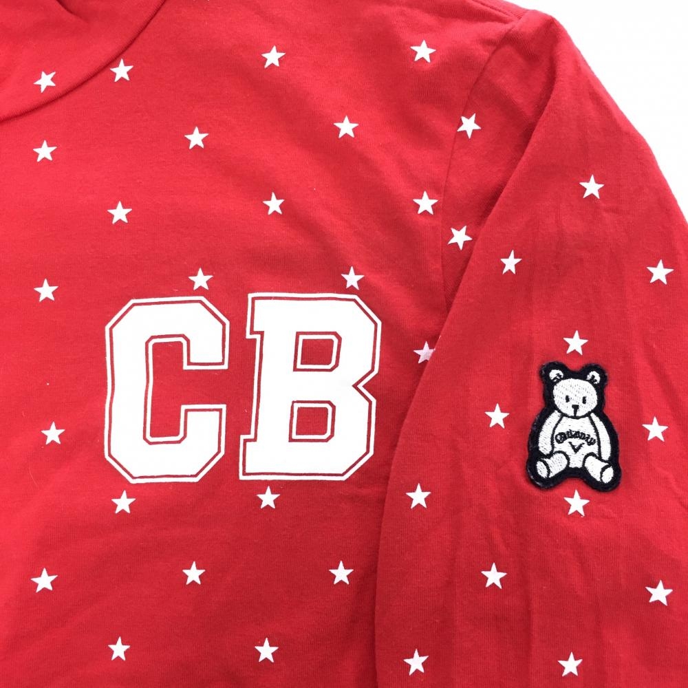 【美品】キャロウェイ 長袖ハイネックシャツ レッド×白 星柄 袖ベアワッペン レディース L ゴルフウェア Callaway