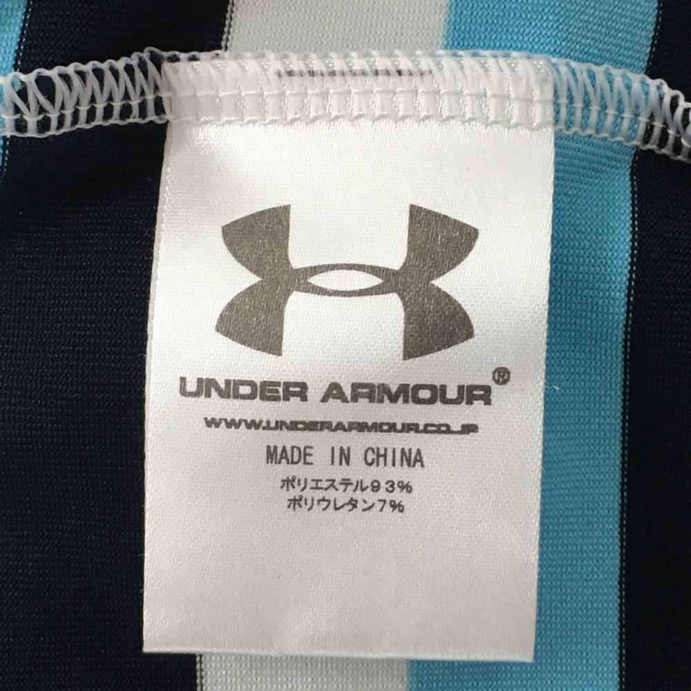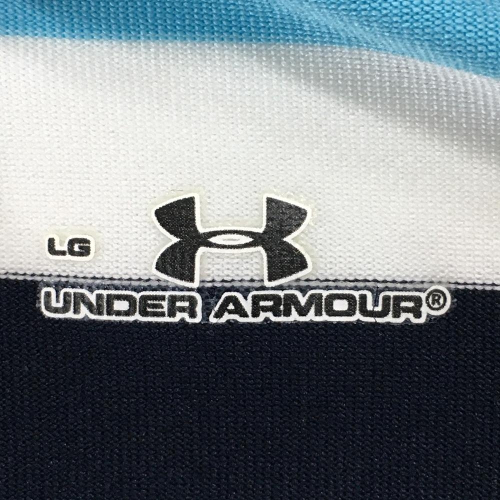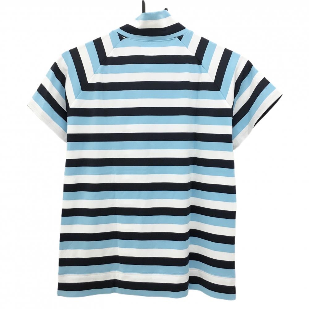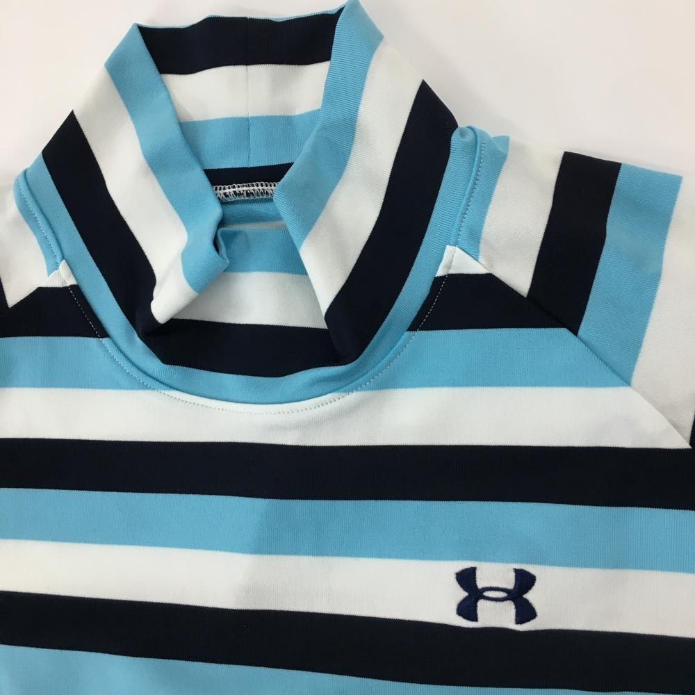 【超美品】アンダーアーマー 半袖ハイネックシャツ ライトブルー×ネイビー ボーダー レディース LG ゴルフウェア UNDER ARMOUR