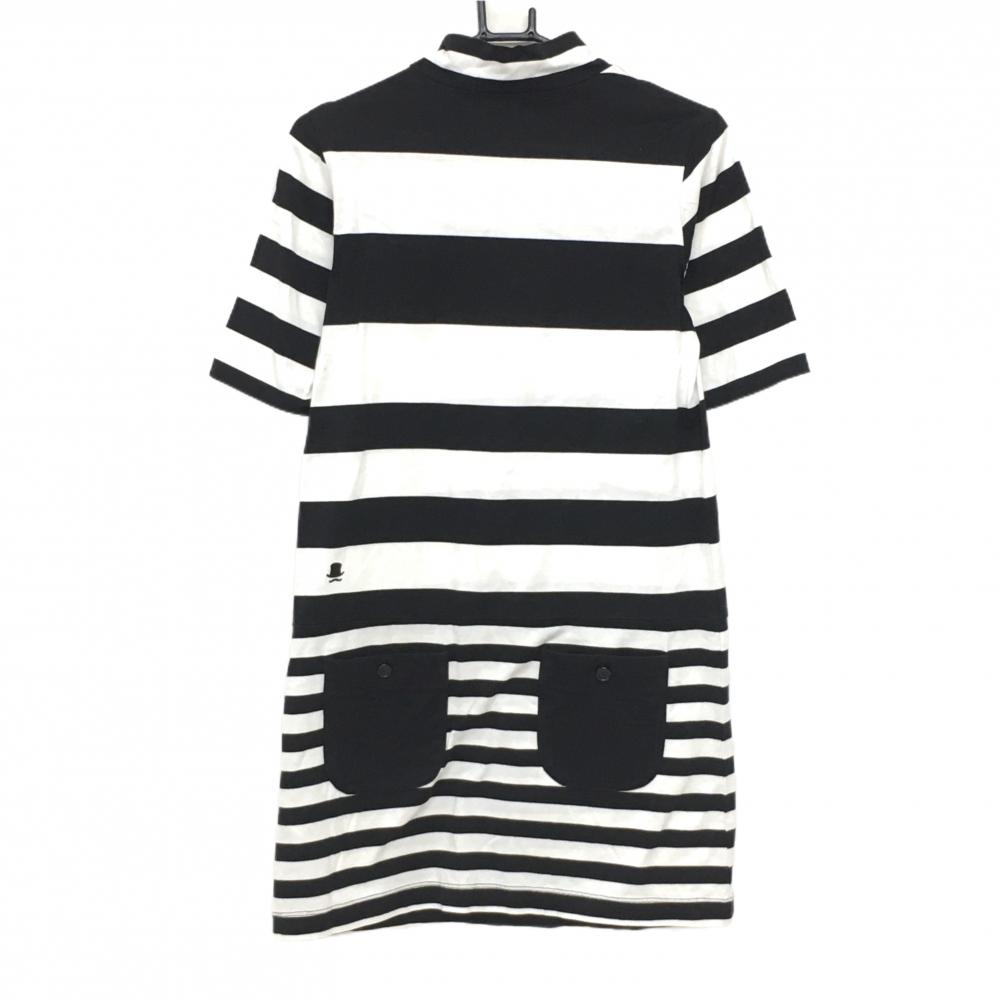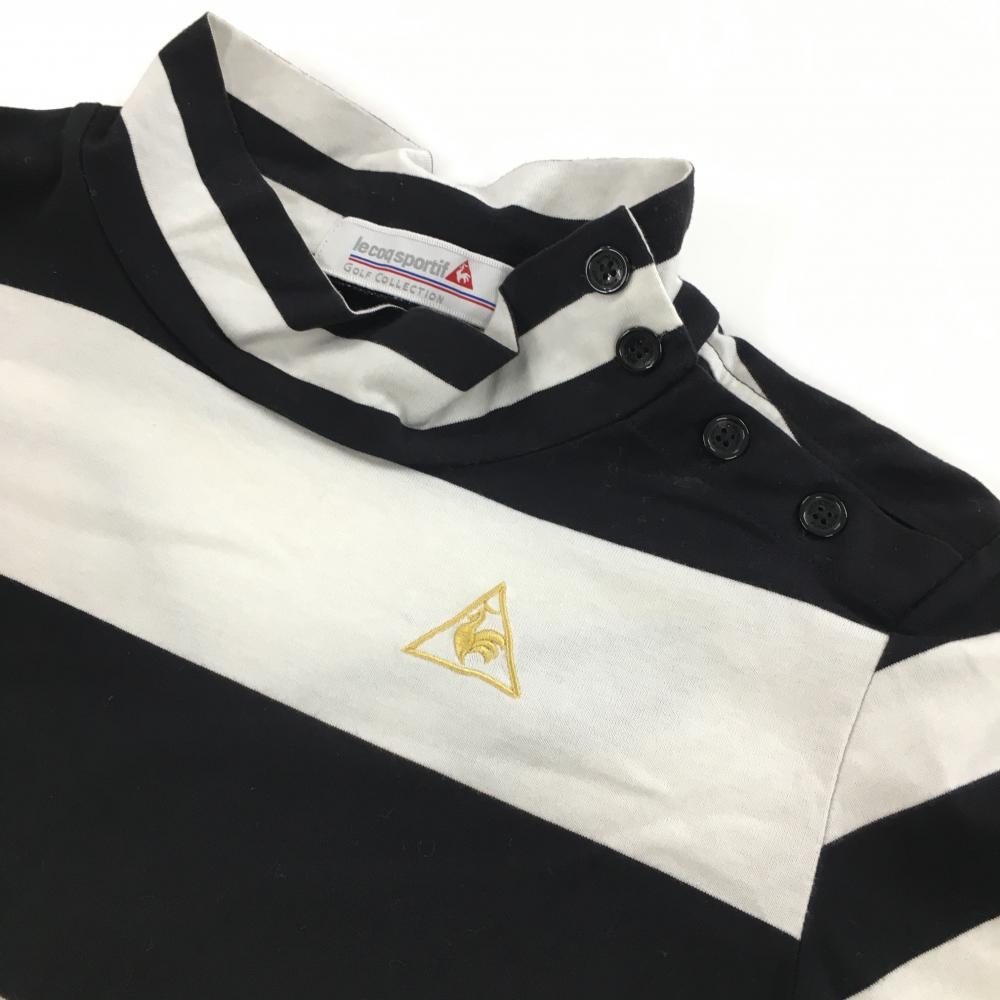 【美品】ルコックゴルフ 半袖ハイネックワンピース 黒×白 ボーダー 肩ボタン レディース L ゴルフウェア le coq sportif