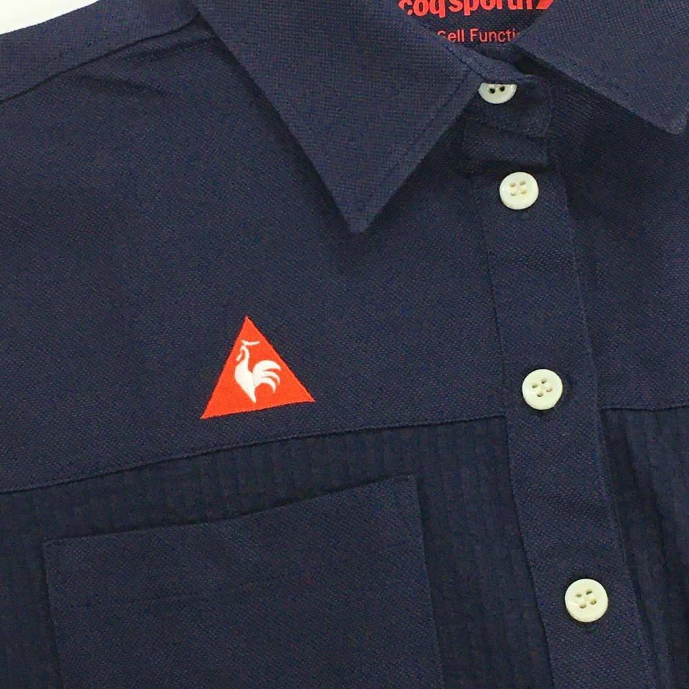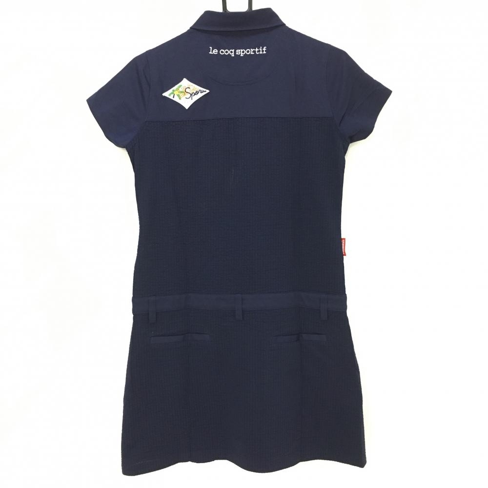 ルコックゴルフ 半袖ポロワンピース ネイビー ロゴレッド サッカー生地 背面ワッペン レディース L ゴルフウェア le coq sportif