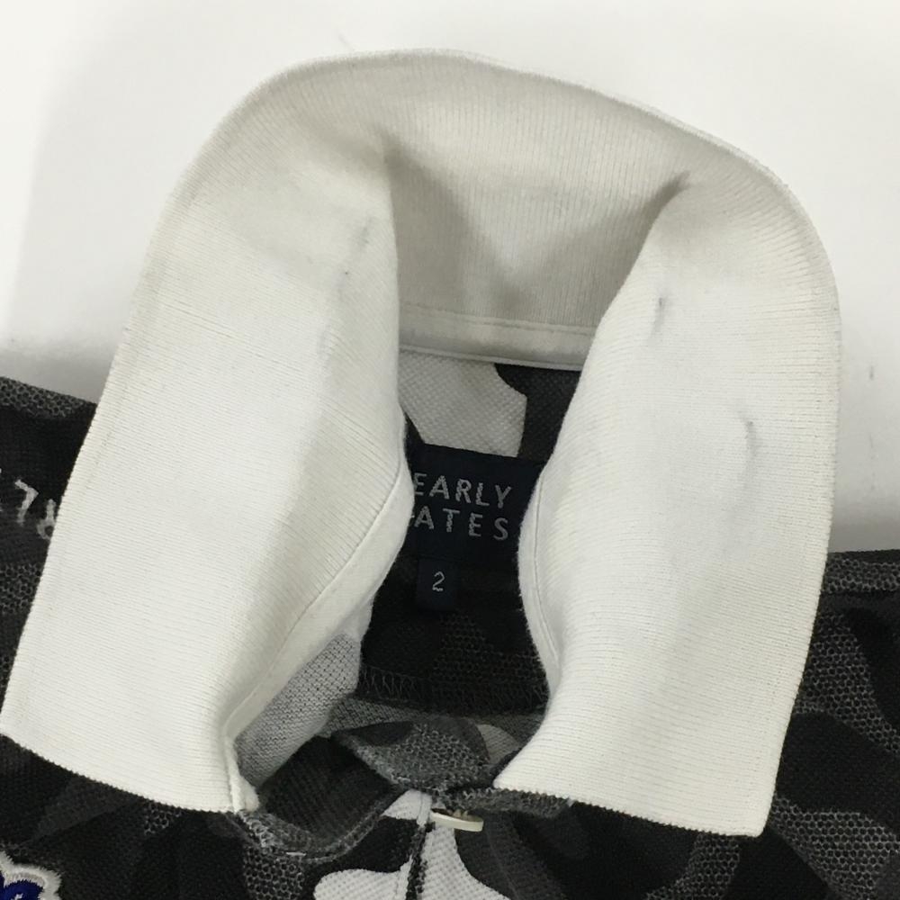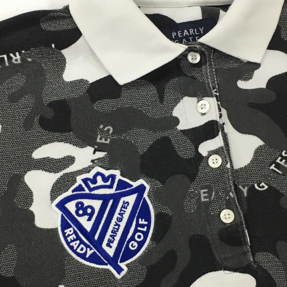 パーリーゲイツ 半袖ポロシャツ グレー×黒×白 迷彩 カモフラ コットン100% レディース 2(L) ゴルフウェア PEARLY GATES