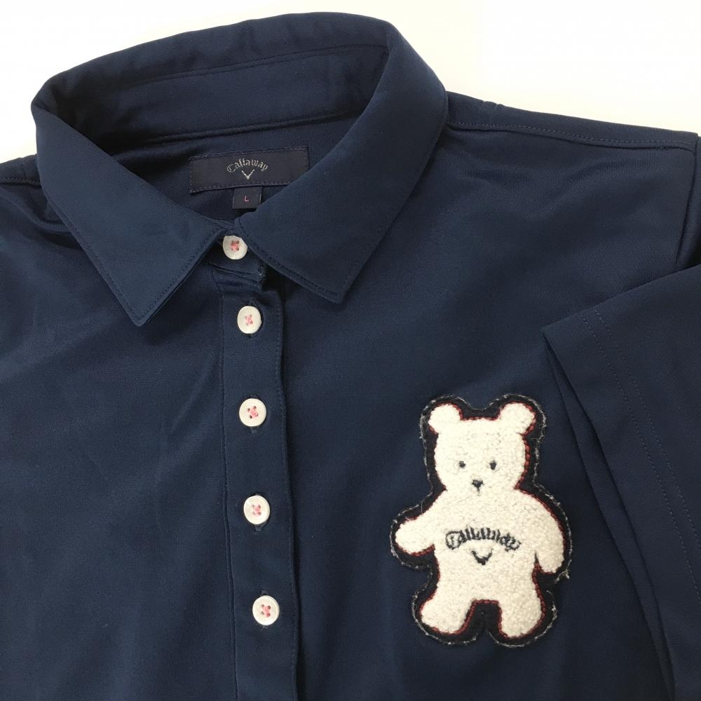 【美品】キャロウェイ 半袖ポロシャツ ネイビー ベアワッペン レディース L ゴルフウェア Callaway