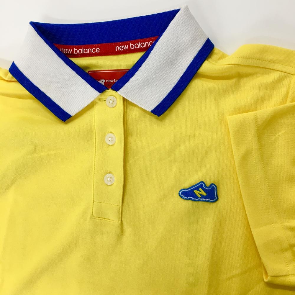 【超美品】ニューバランスゴルフ 半袖ポロシャツ イエロー×白 スニーカーワッペン レディース 2(L) ゴルフウェア New Balance