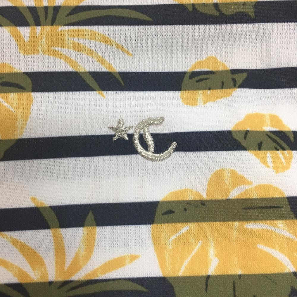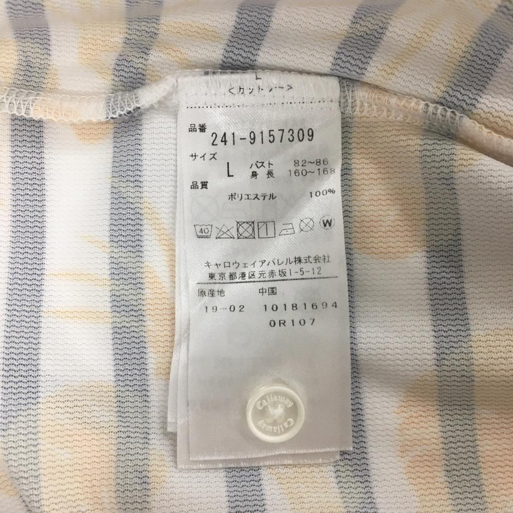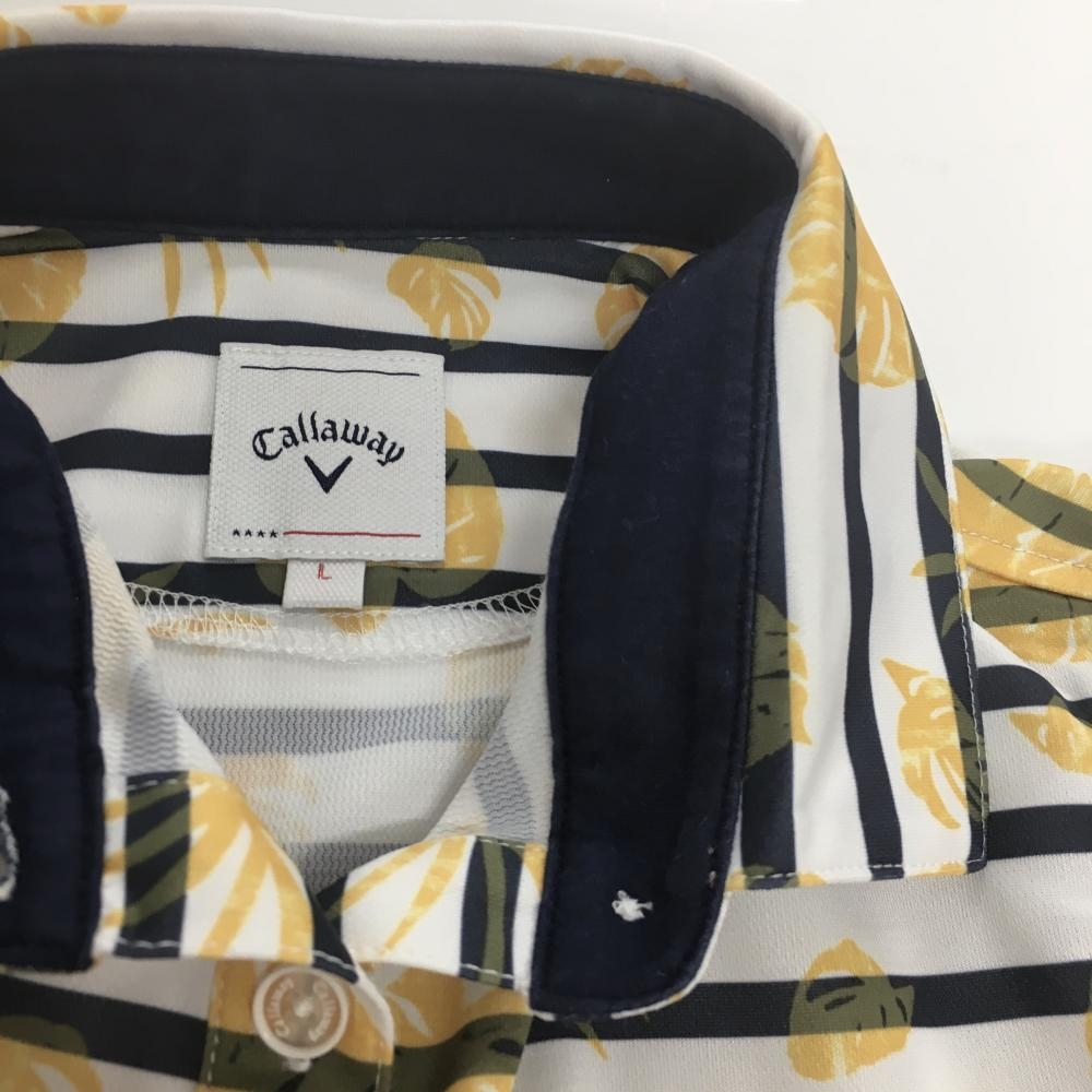 キャロウェイ ノースリーブポロシャツ 白×ネイビー リーフ柄イエロー ボーダー レディース L ゴルフウェア Callaway