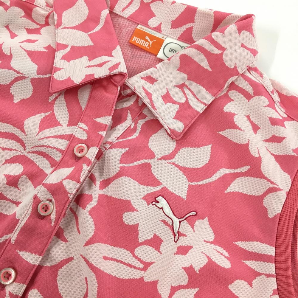プーマ ノースリーブポロシャツ ピンク×白 総柄 ロゴ刺しゅう レディース O ゴルフウェア PUMA