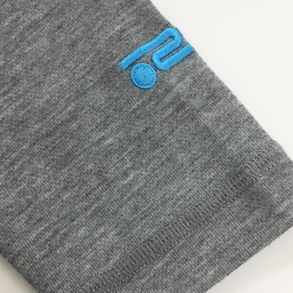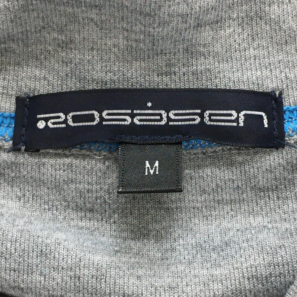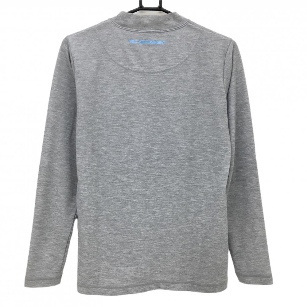 【超美品】ロサーセン 長袖ハイネックシャツ グレー×ライトブルー プリント バックロゴ刺しゅう メンズ M ゴルフウェア Rosasen