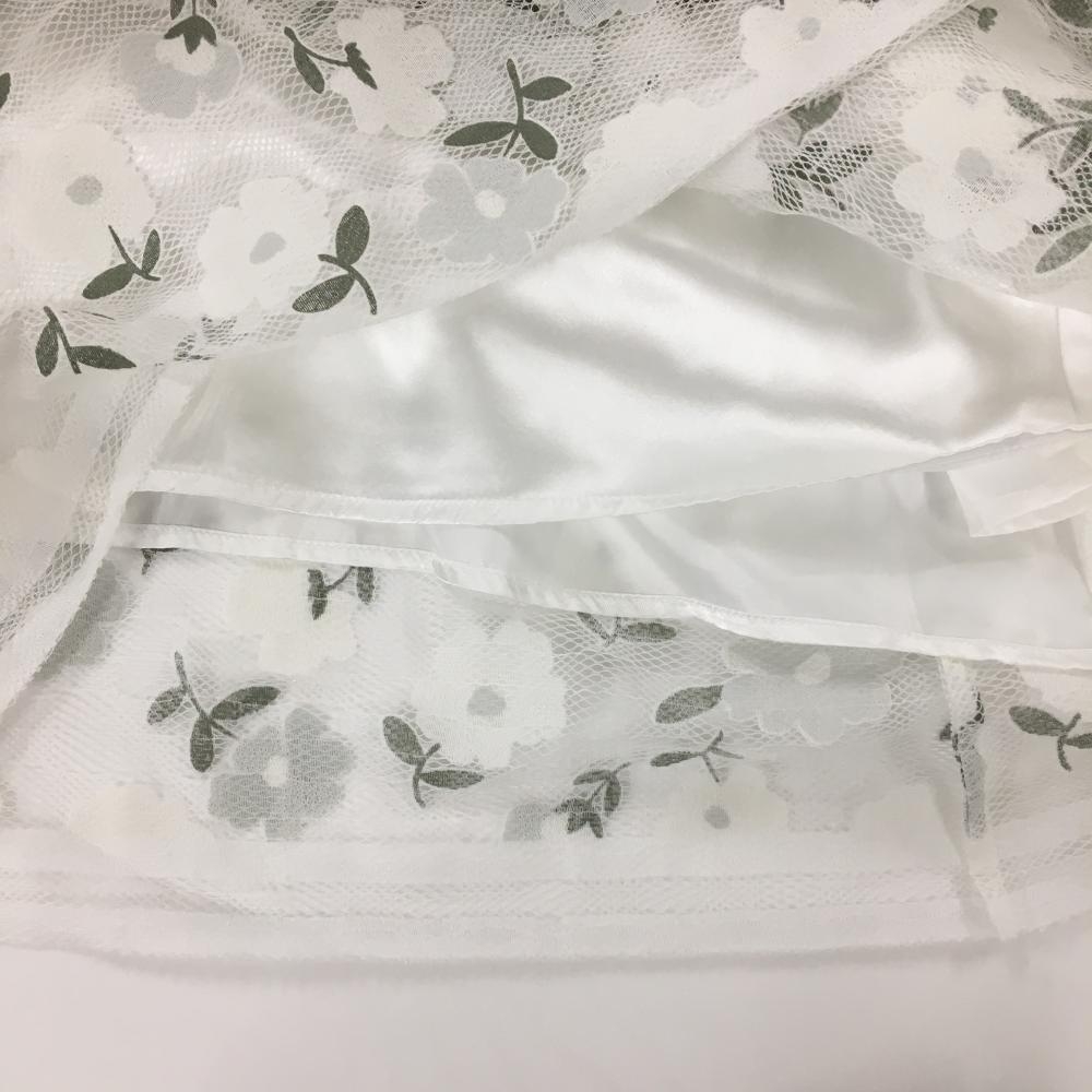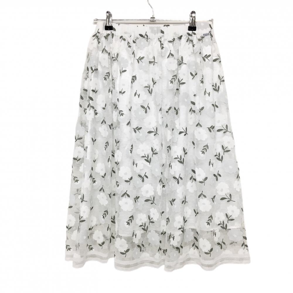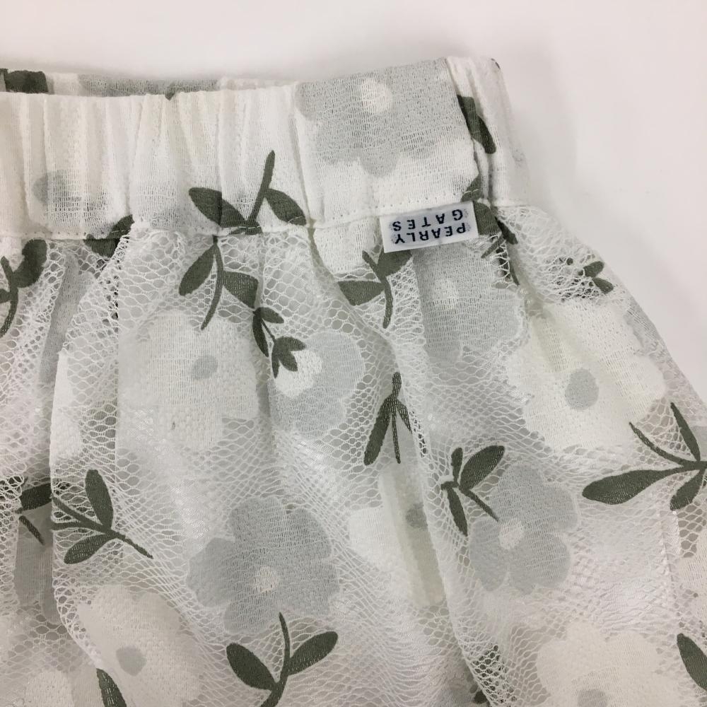 【超美品】パーリーゲイツ スカート 白×カーキ 花柄 レース地 裏地付 ミモレ丈 レディース 0(S) ゴルフウェア PEARLY GATES