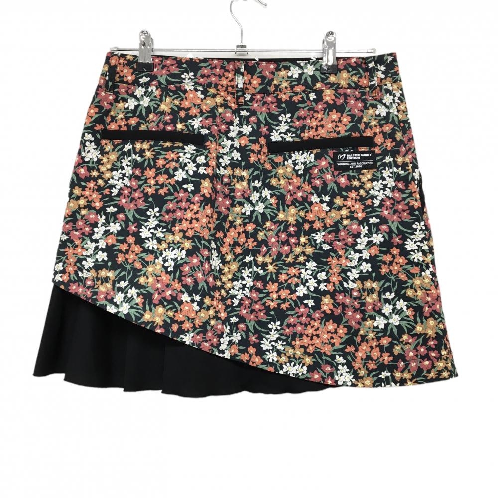 【新品】マスターバニー スカート 黒×マルチカラー 花柄 リバティ ストレッチ レディース 2(L) ゴルフウェア MASTER BUNNY EDITION