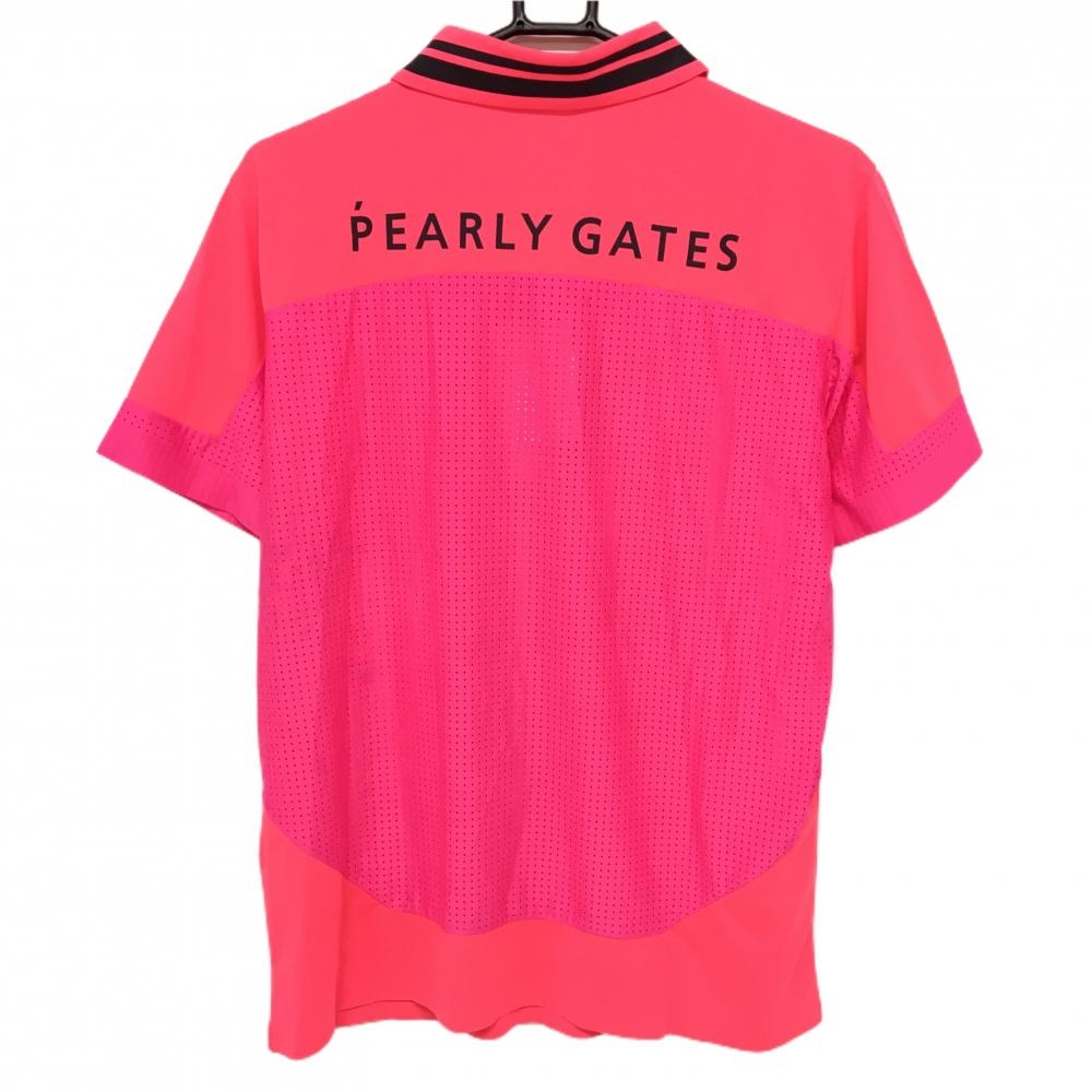 【新品】PGGパーリーゲイツ 半袖ポロシャツ 蛍光ピンク 一部メッシュ メンズ 4(M) ゴルフウェア PEARLY GATES