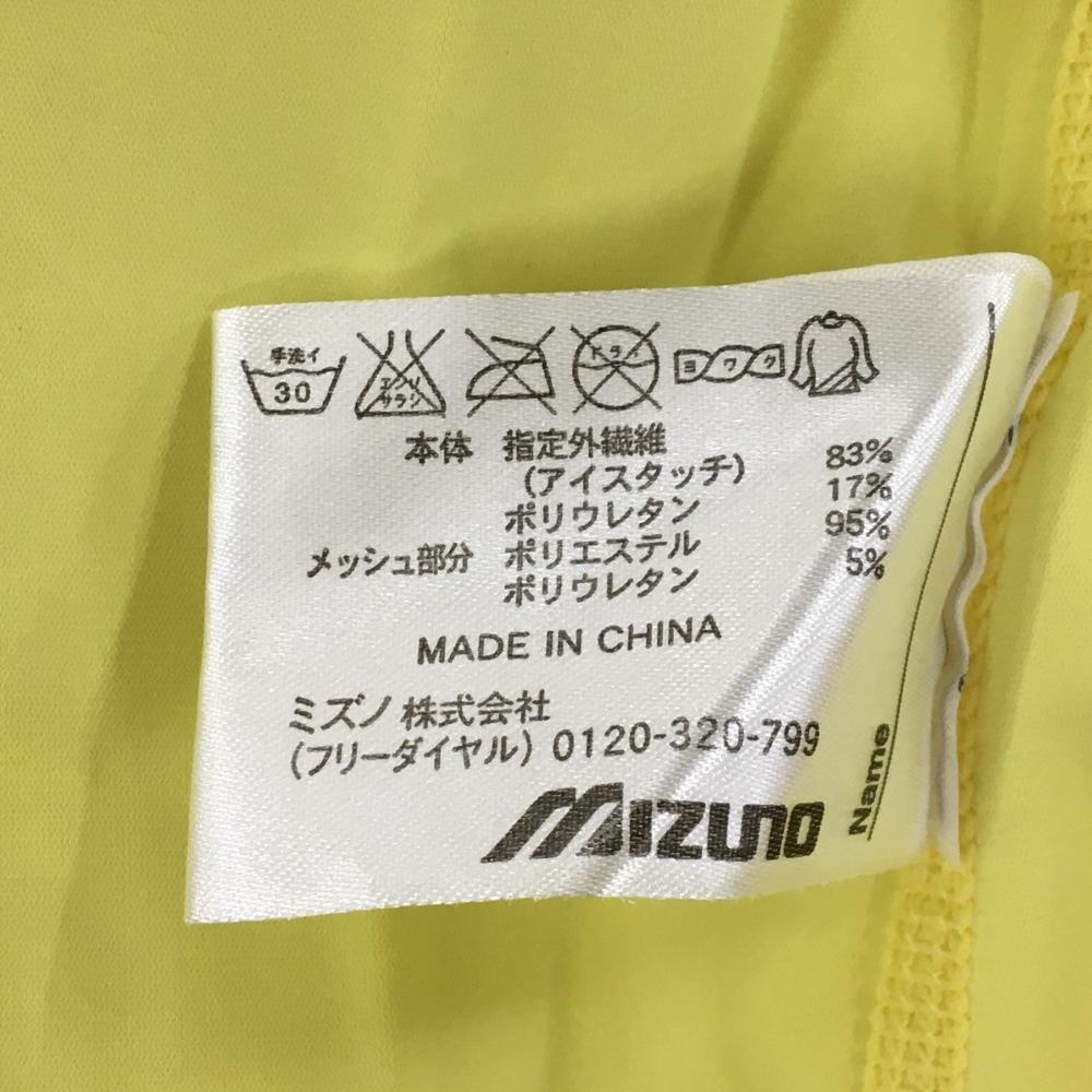 【美品】ミズノ インナーシャツ イエロー ロゴシルバー 袖下・背面一部メッシュ レディース O ゴルフウェア MIZUNO