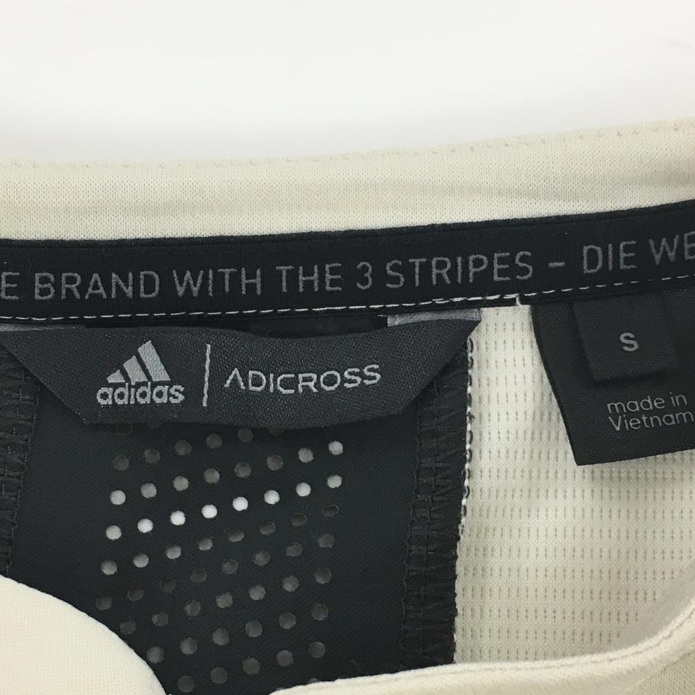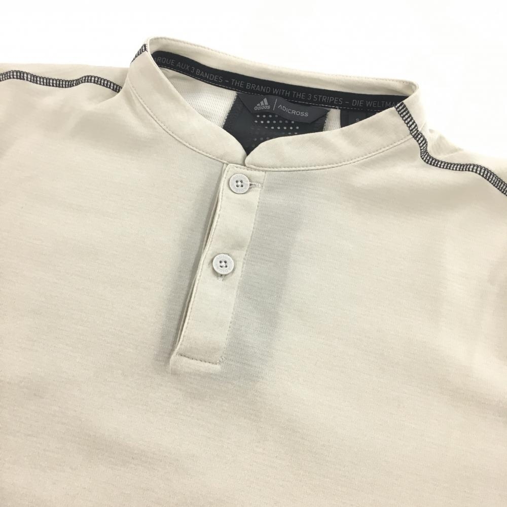 アディダス 半袖ポロシャツ ベージュ系 ストライプ地模様 スタンドカラー メンズ S ゴルフウェア adidas