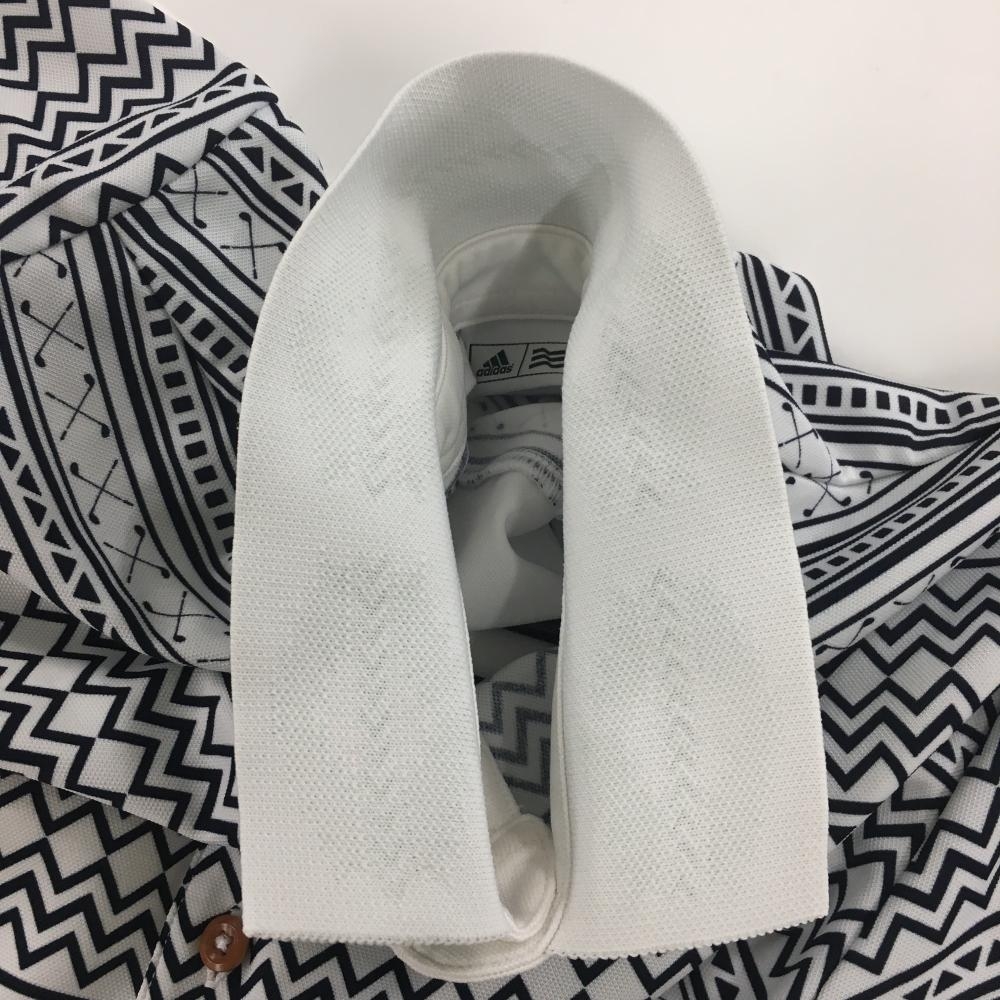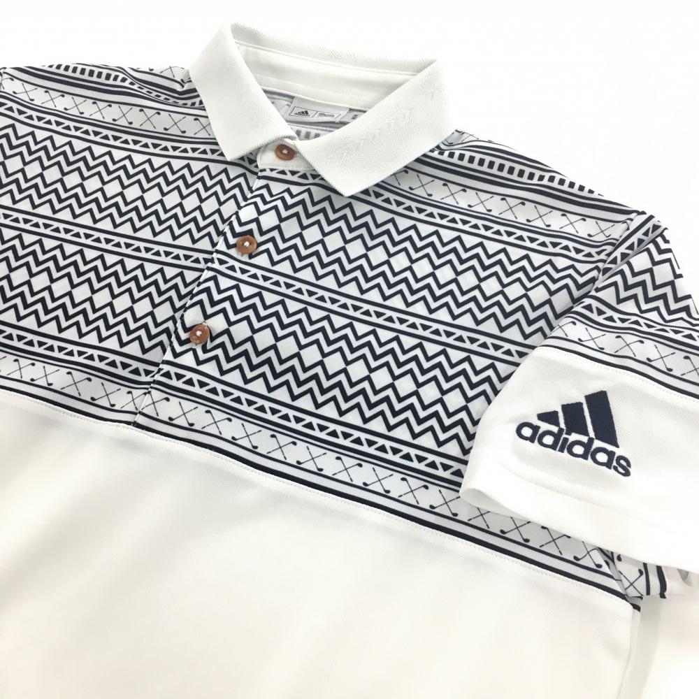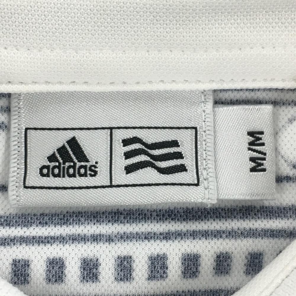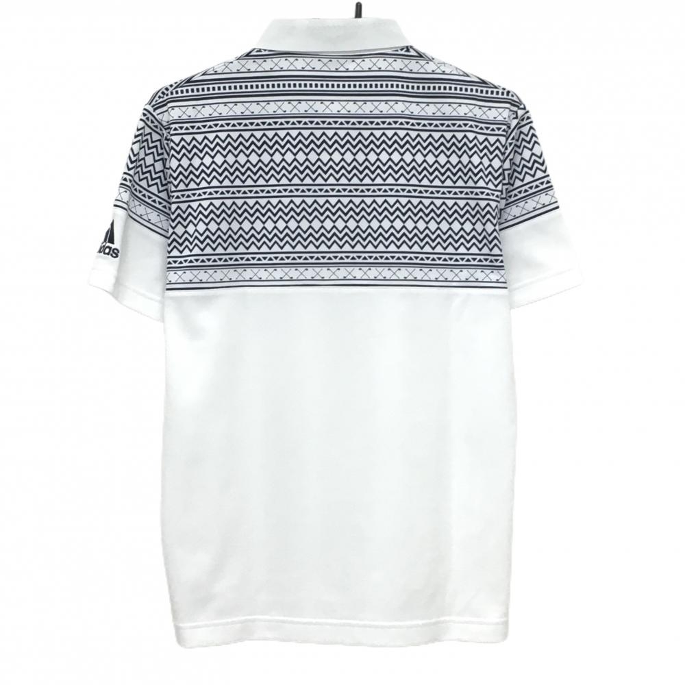 【美品】アディダス 半袖ポロシャツ 白×ダークネイビー 上部ギザギザ柄 メンズ M/M ゴルフウェア adidas