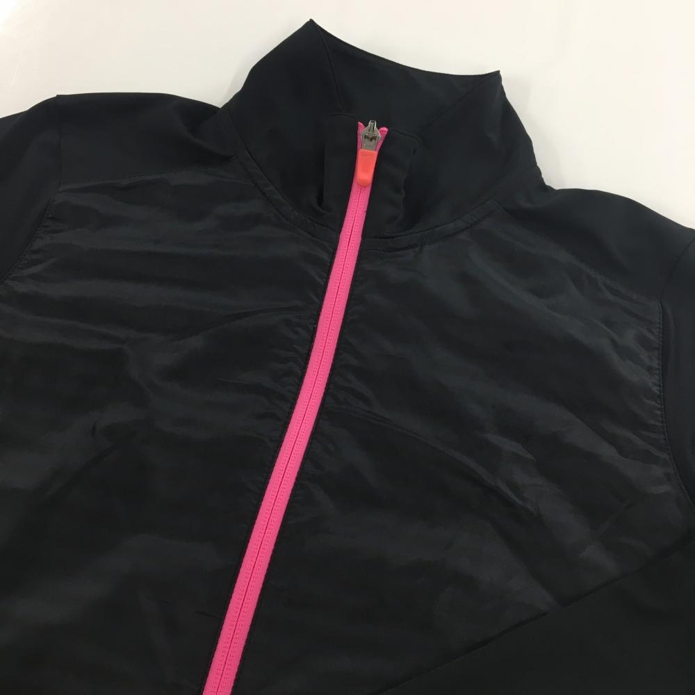 【超美品】ナイキ 異素材ジャケット 黒 ジップピンク 身頃ボーダー地模様 ロゴ刺しゅう レディース M ゴルフウェア NIKE