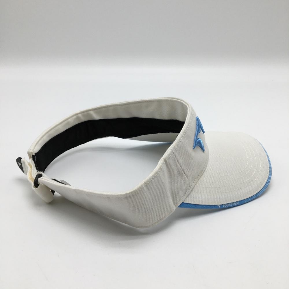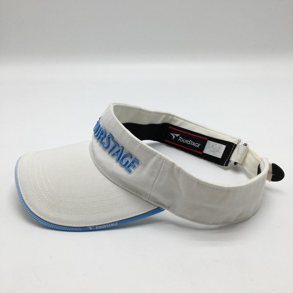 【美品】ツアーステージ サンバイザー 白×ライトブルー 立体ロゴ つば薄汚れ小 ゴルフウェア TOURSTAGE