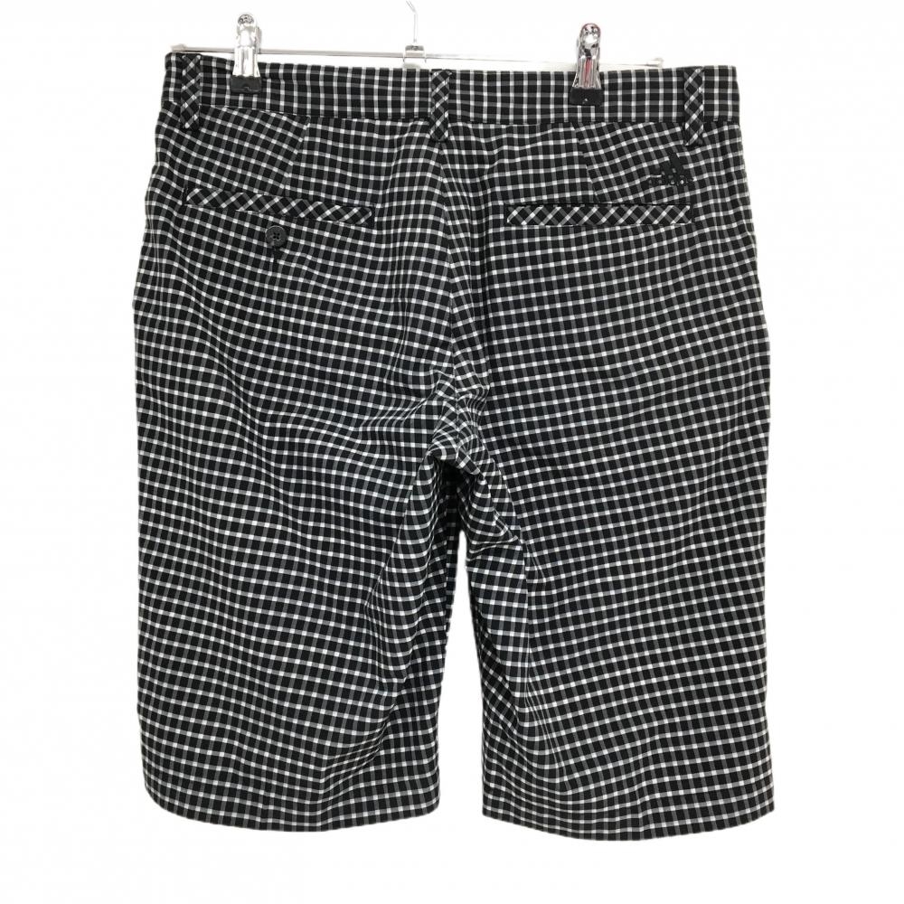 【超美品】アディダス ハーフパンツ 黒×白 チェック ロゴ刺しゅう メンズ M/M ゴルフウェア adidas
