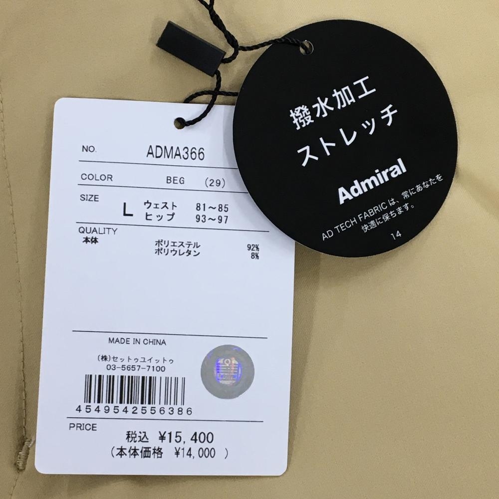 【新品】アドミラル パンツ ベージュ 撥水加工 ストレッチ ウエスト一部ゴム メンズ L ゴルフウェア 2023年モデル Admiral