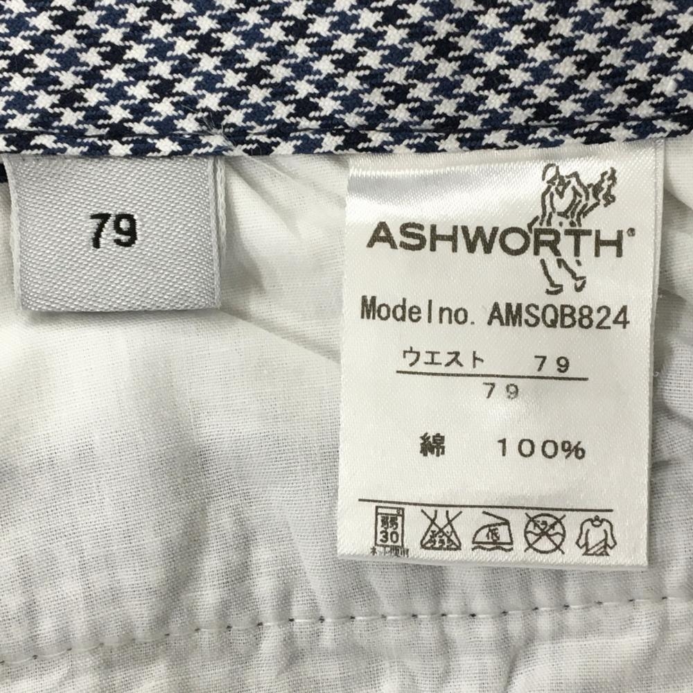 アシュワース パンツ 白×ネイビー 千鳥柄 バックロゴ メンズ 79 ゴルフウェア ASHWORTH