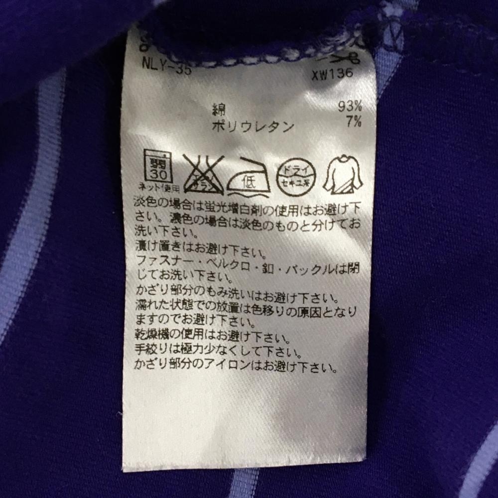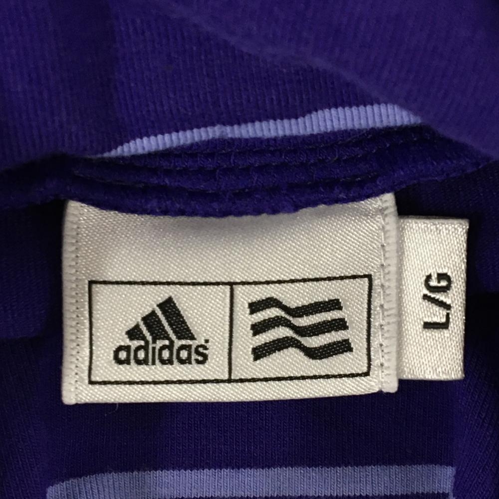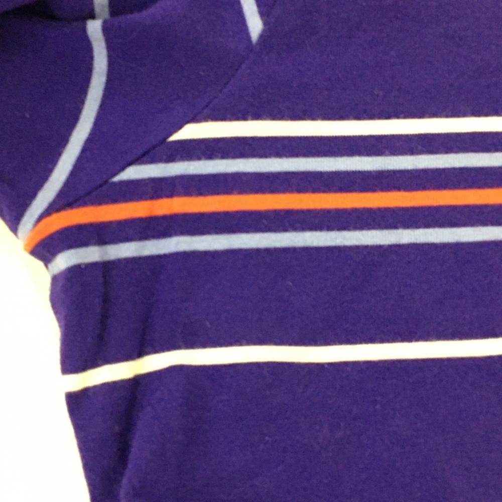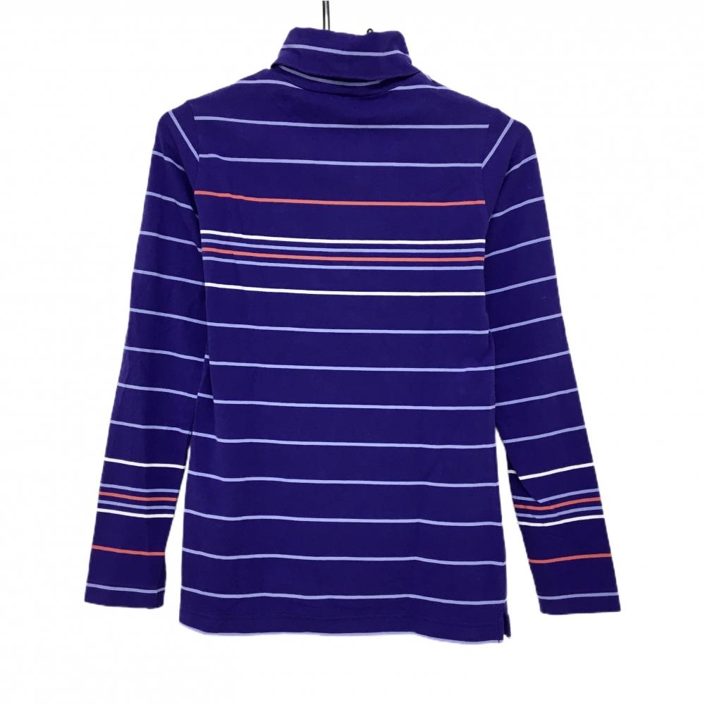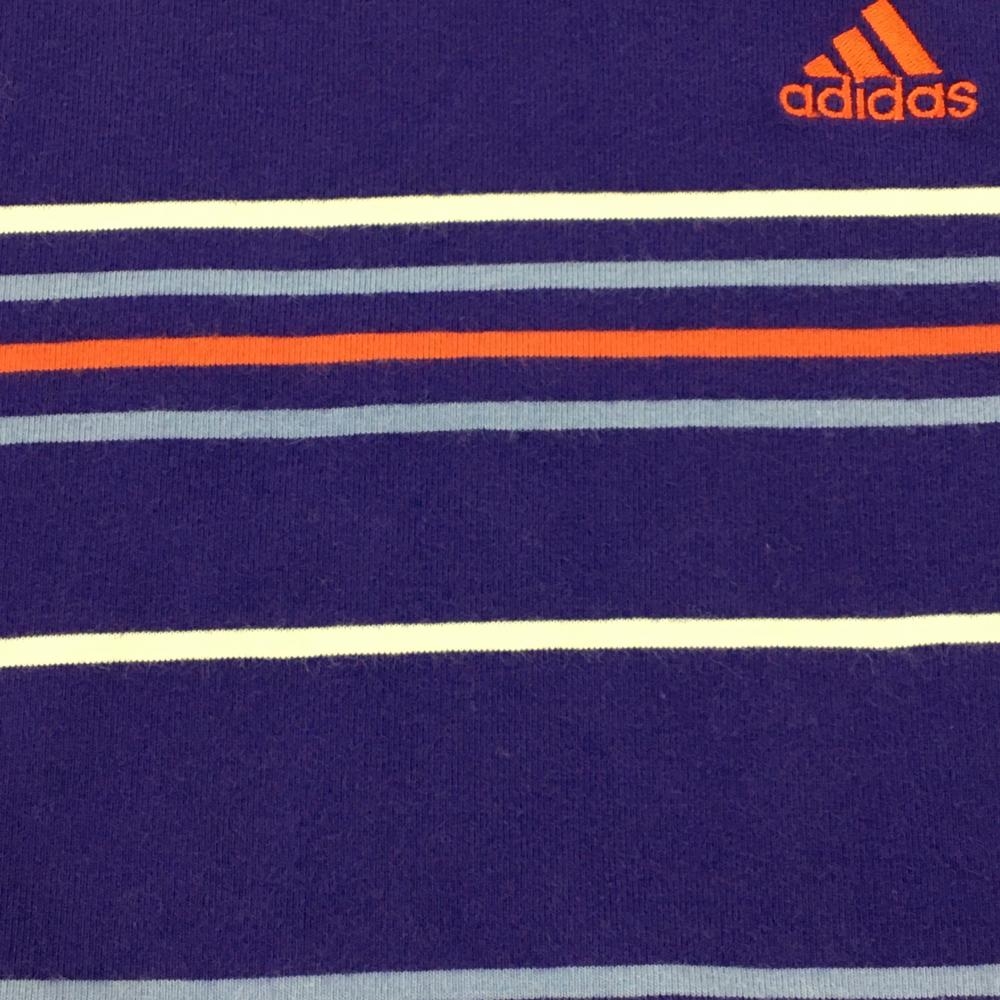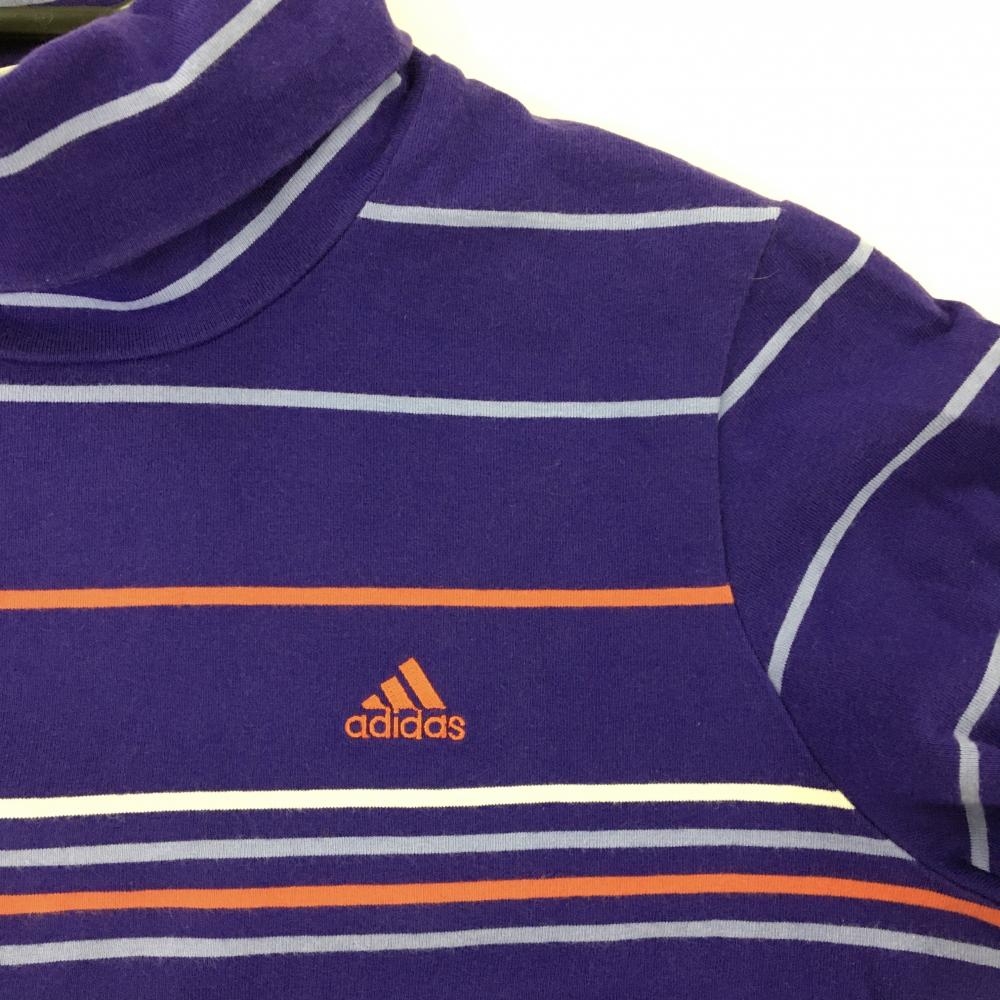 アディダス 長袖タートルネックシャツ パープル×ライトブルー ボーダー レディース L/G(L) ゴルフウェア adidas