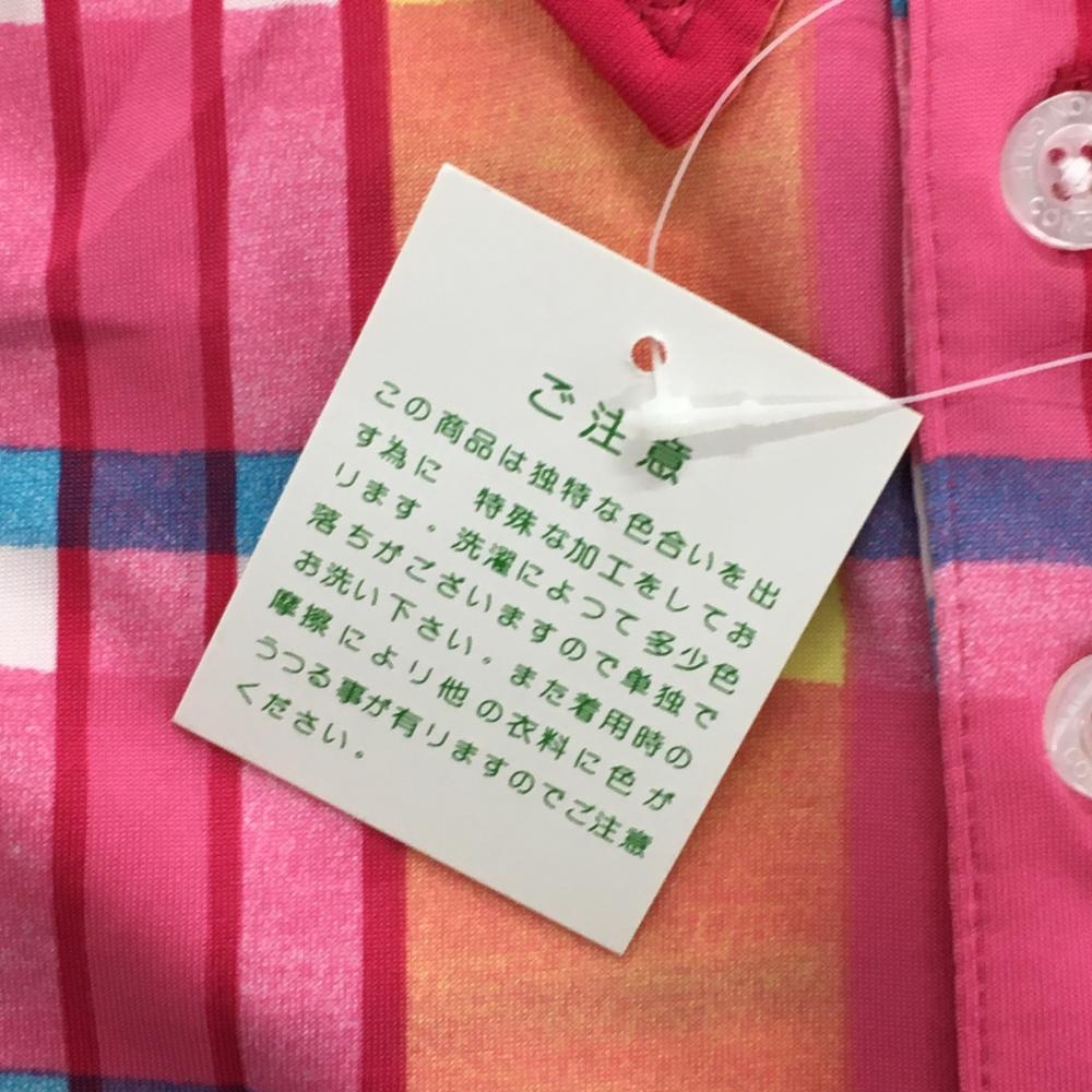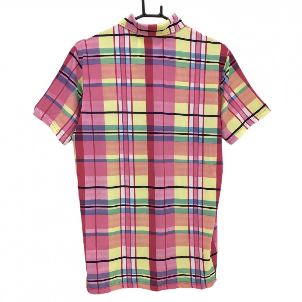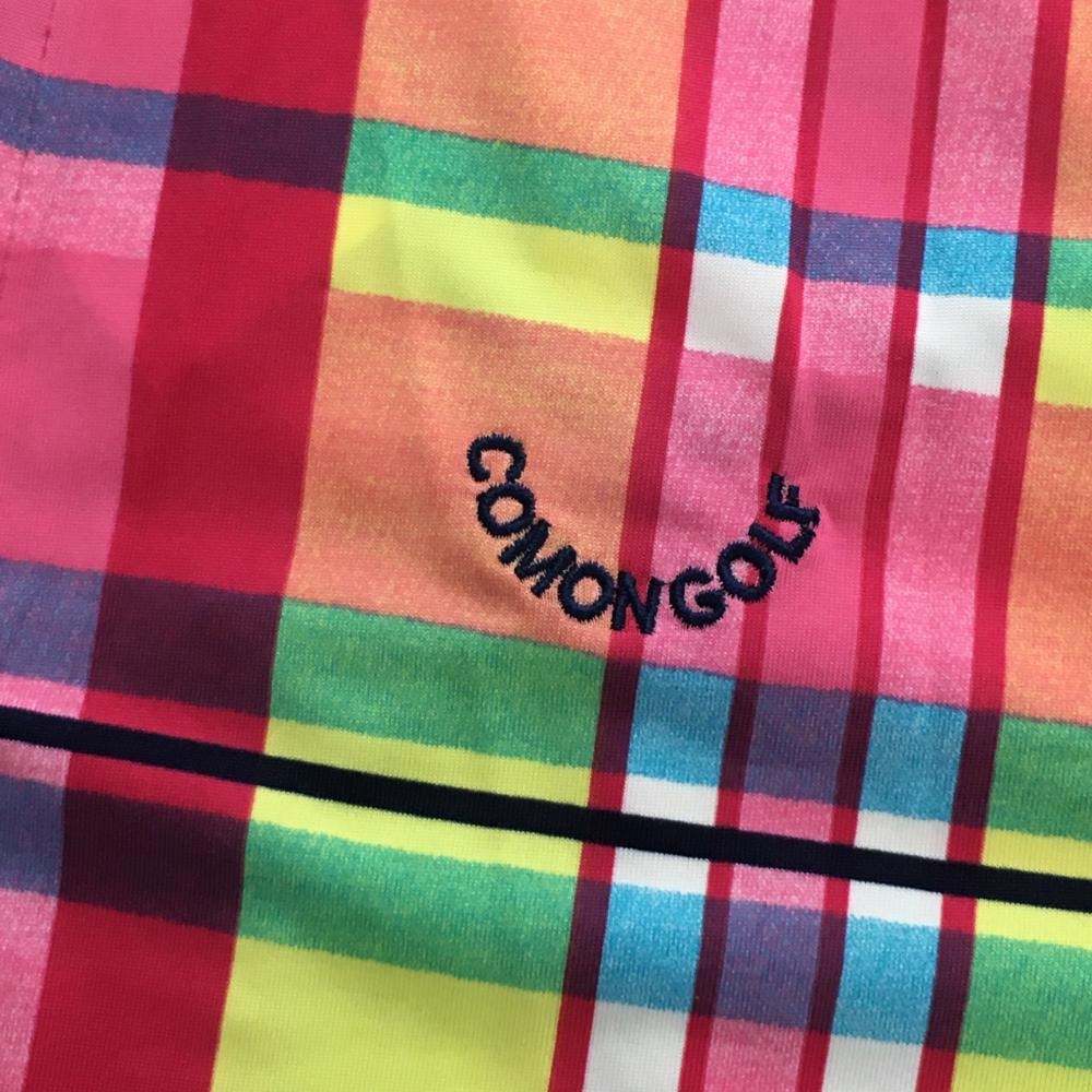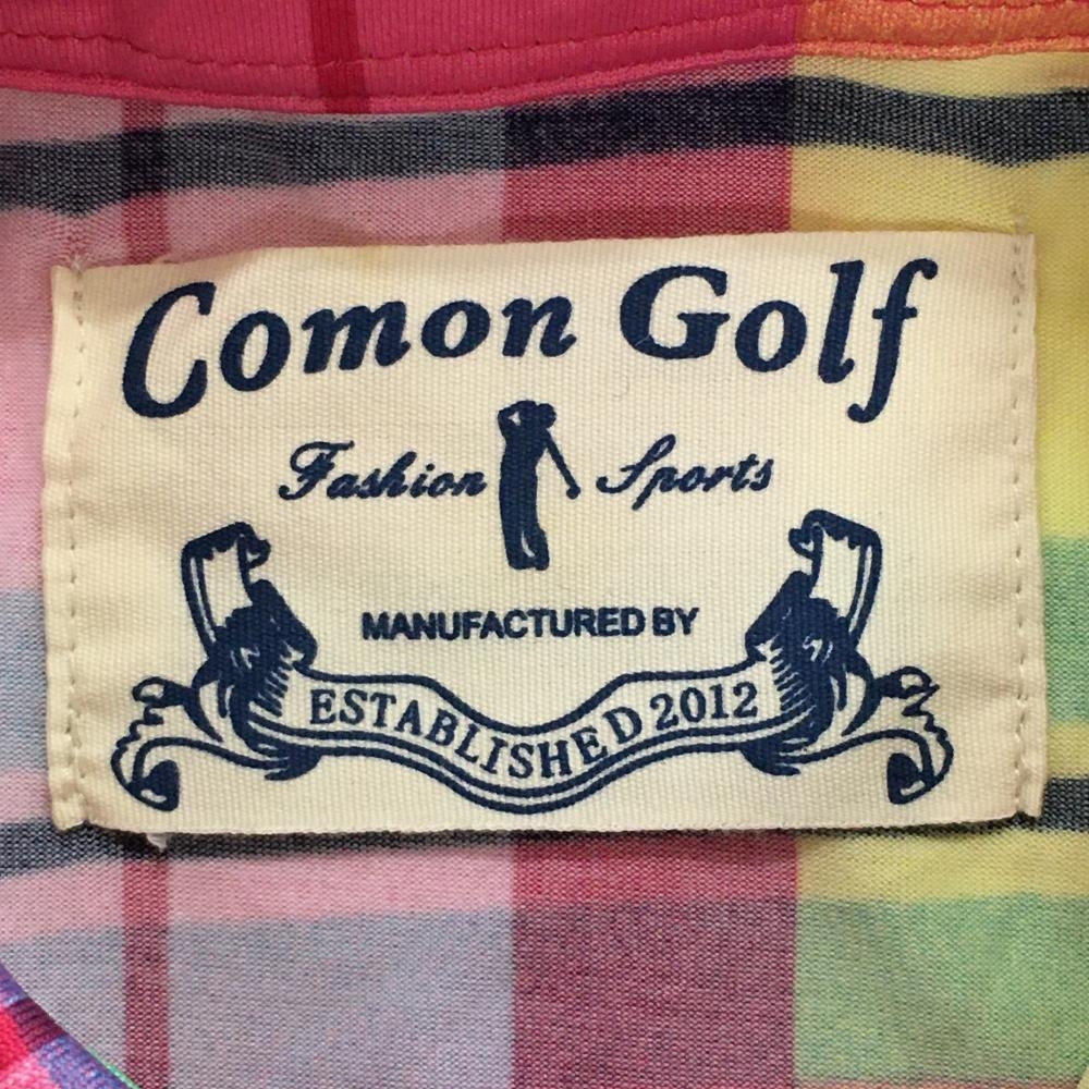 【新品】コモンゴルフ 半袖ポロシャツ ピンク×マルチカラー チェック ボタンダウン メンズ L ゴルフウェア COMON GOLF