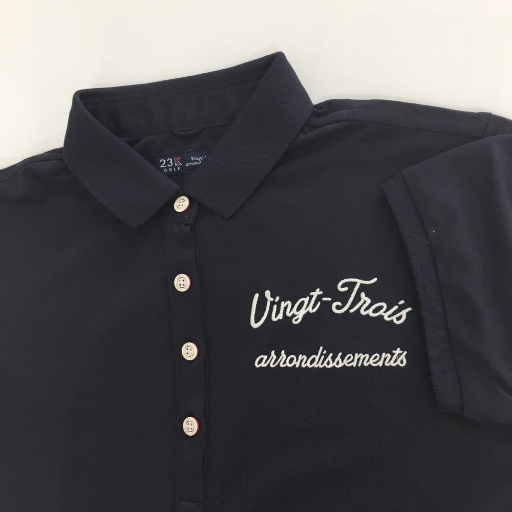 【美品】23区ゴルフ 半袖ポロシャツ ネイビー 袖ラインストーン レディース I(M) ゴルフウェア 23区