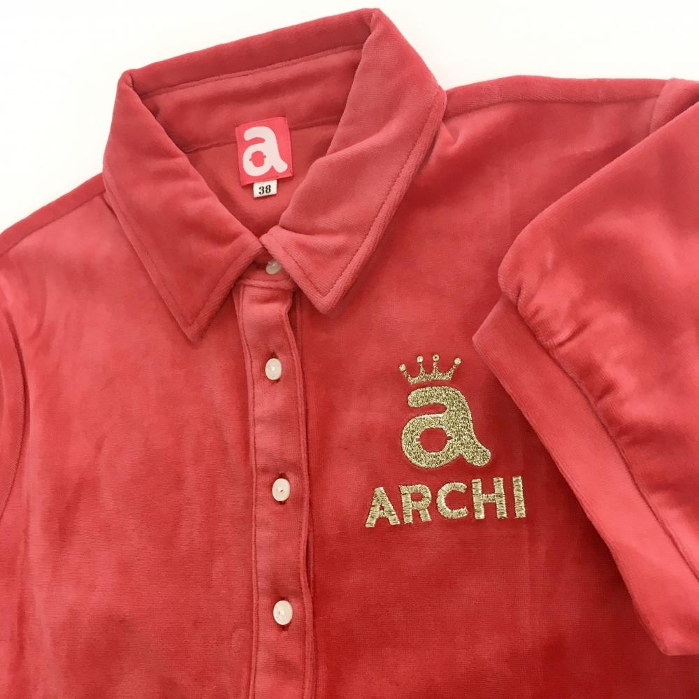 アルチビオ 半袖ポロシャツ レッド ベロア調 レディース 38(M) ゴルフウェア archivio