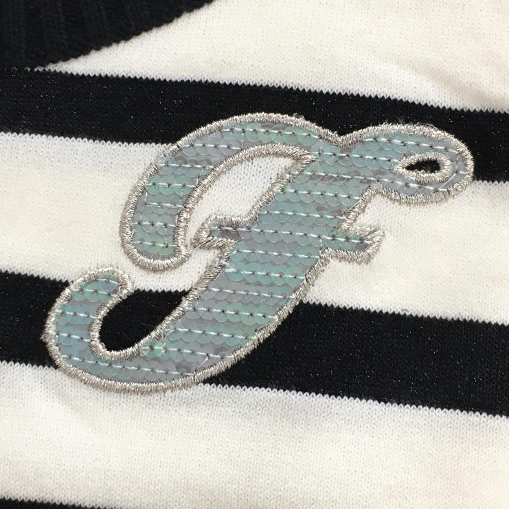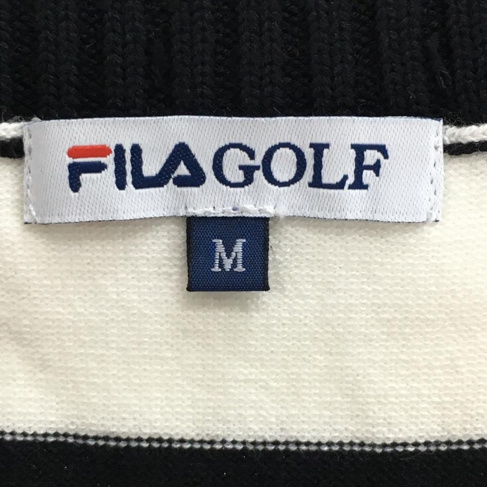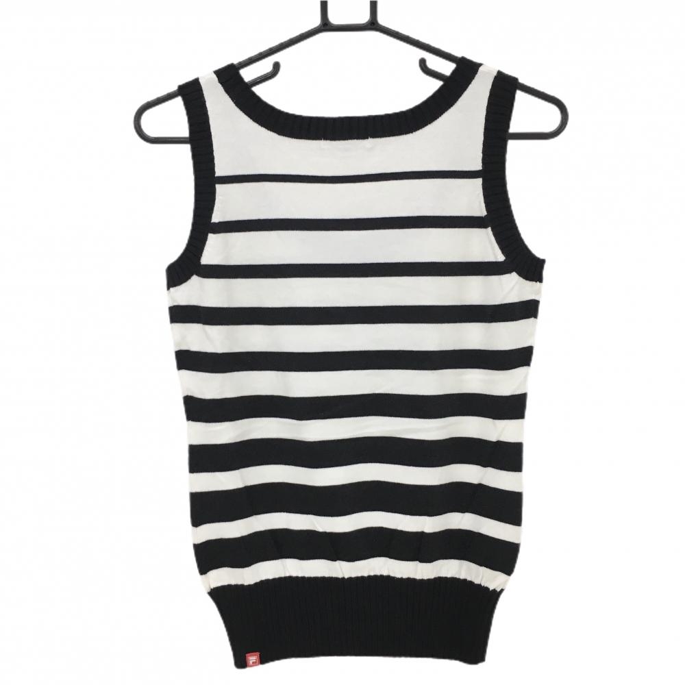 【超美品】フィラゴルフ ニットベスト 白×黒 ボーダー ラメ糸 スパンコール レディース M ゴルフウェア FILA GOLF