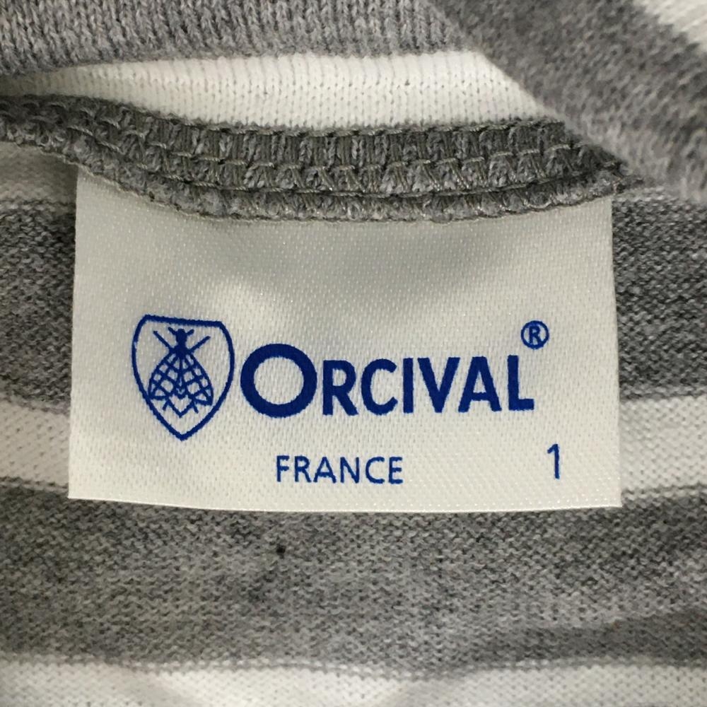 【新品】オーシバル 長袖タートルネックシャツ グレー×白 ボーダー コットン100% レディース 1 ゴルフウェア ORCIVAL