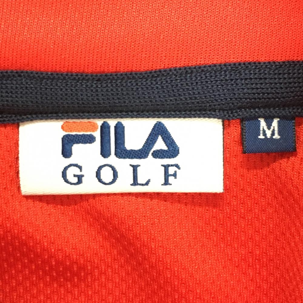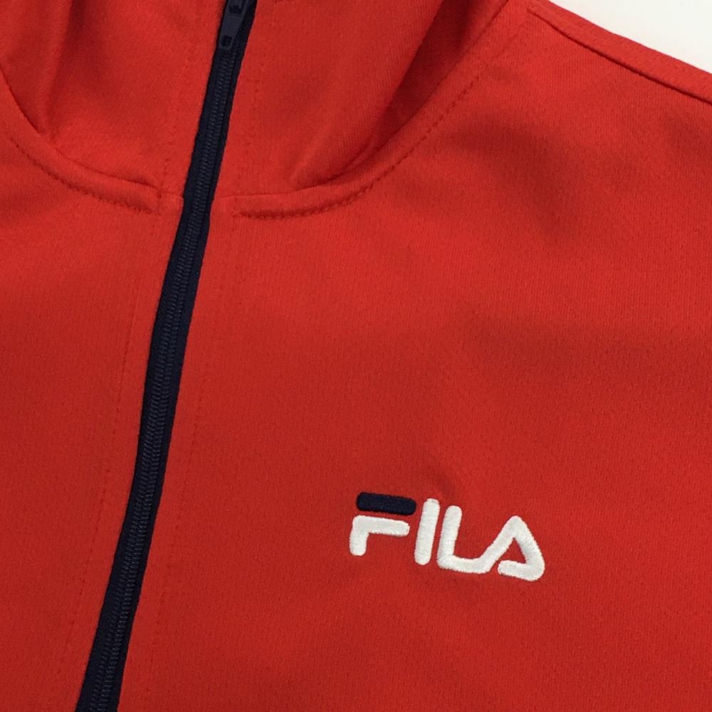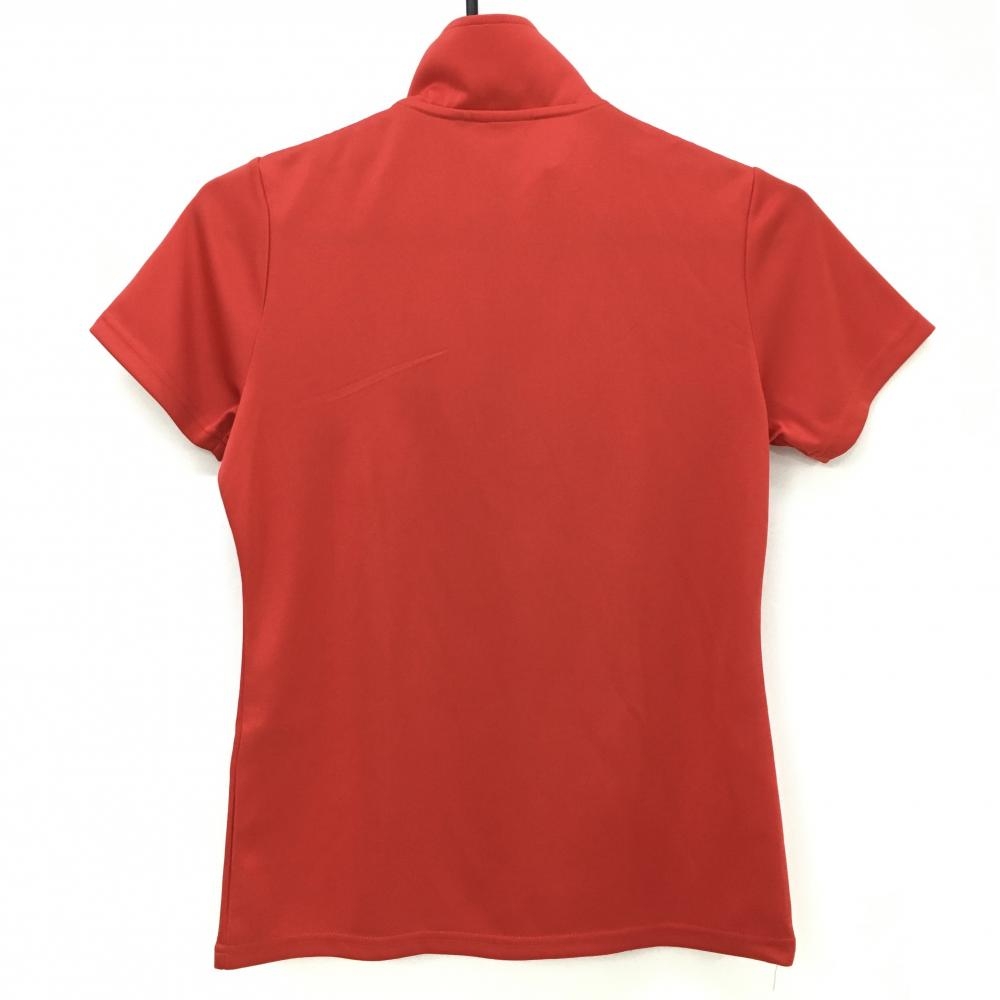 【超美品】フィラゴルフ 半袖ハイネックシャツ レッド×ネイビー ハーフジップ ロゴ刺しゅう レディース M ゴルフウェア FILA GOLF