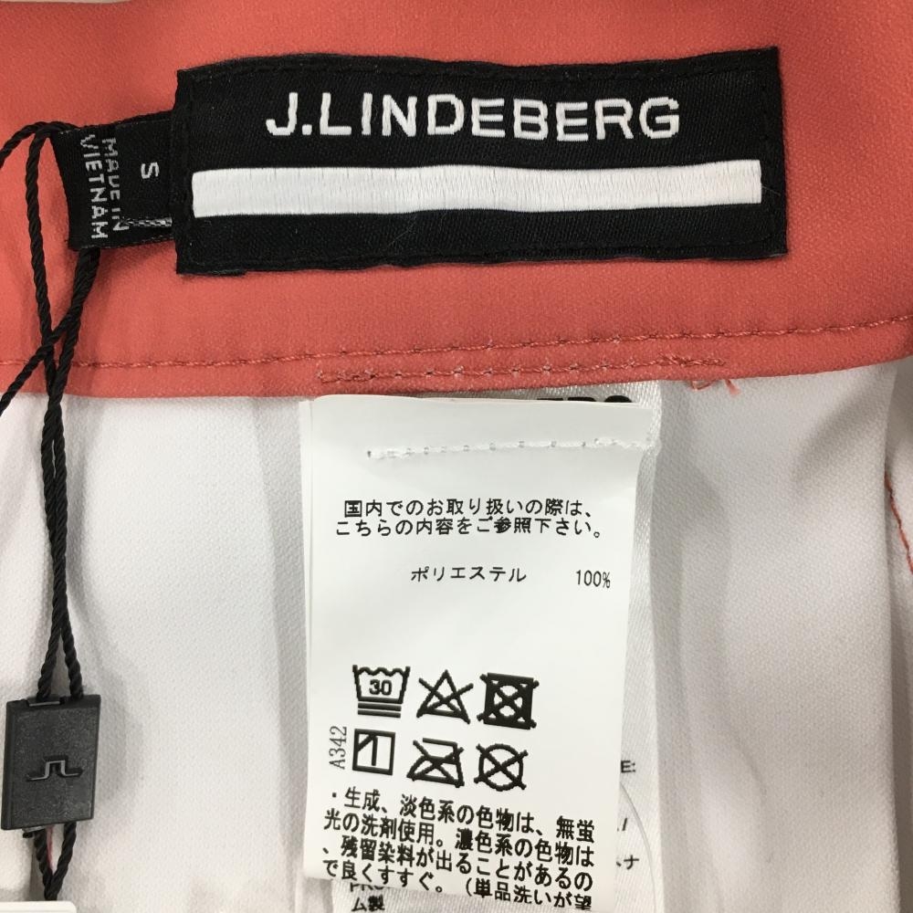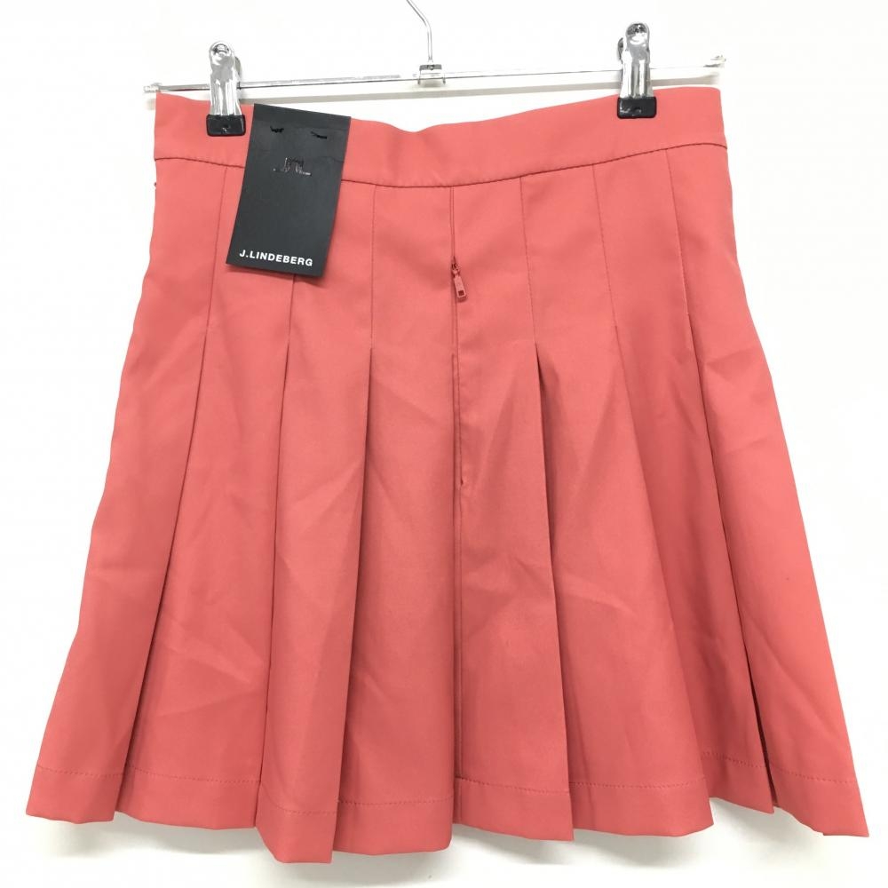 【新品】ジェイリンドバーグ プリーツスカート サーモンピンク系×レッド ビッグロゴ レディース S ゴルフウェア J.LINDEBERG
