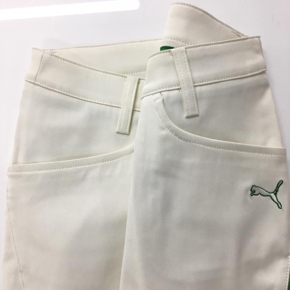プーマ 半端丈パンツ 白×グリーン ティー装着可 レディース M ゴルフウェア PUMA